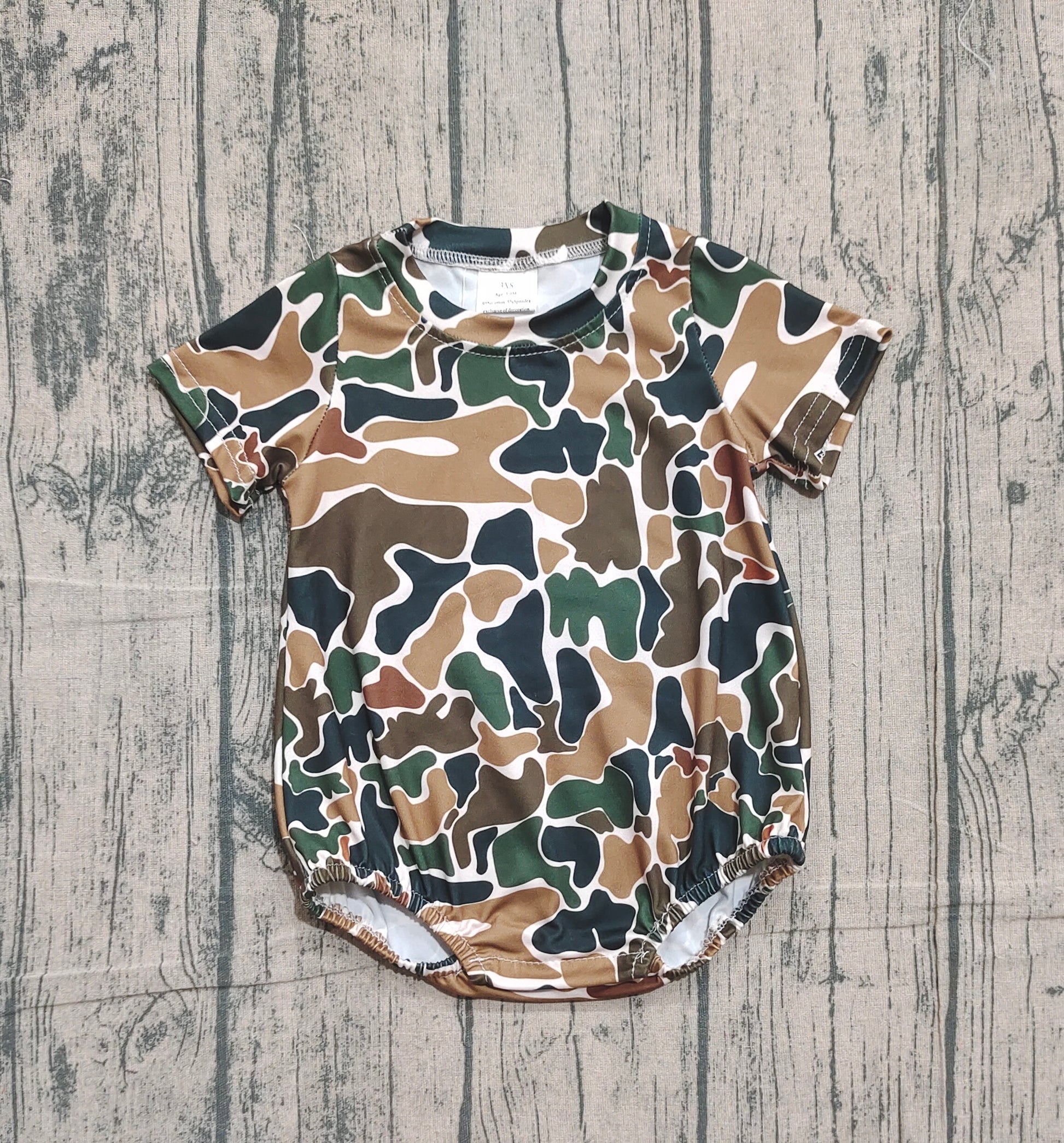 ( No moq ) Preorder Baby Boys Infant Short Sleeves Brown Camo Bubble Romper