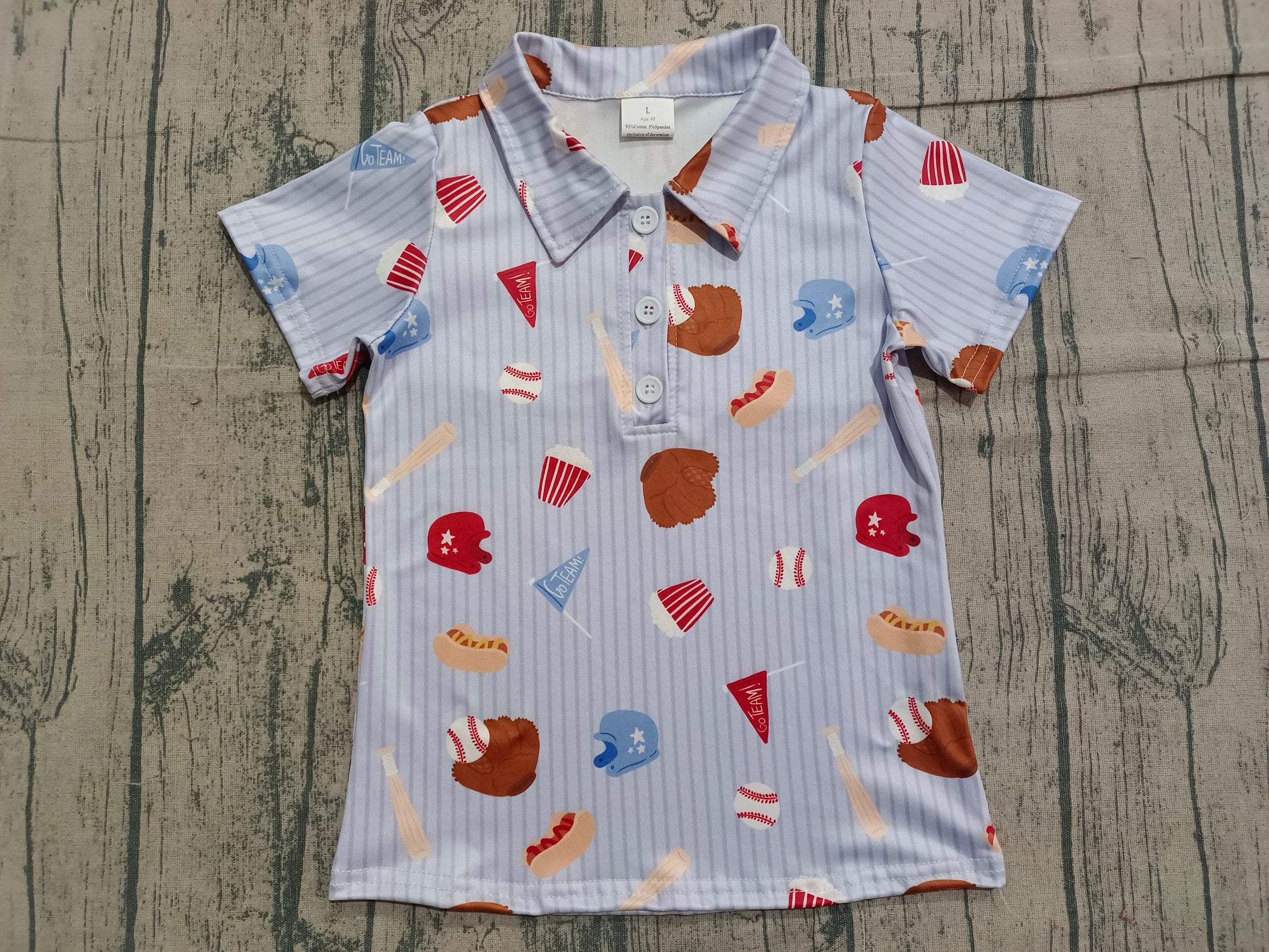 ( No moq ) Preorder Baby Boys Short Sleeves Baseball Buttons Blue Stripes Shirt Tops