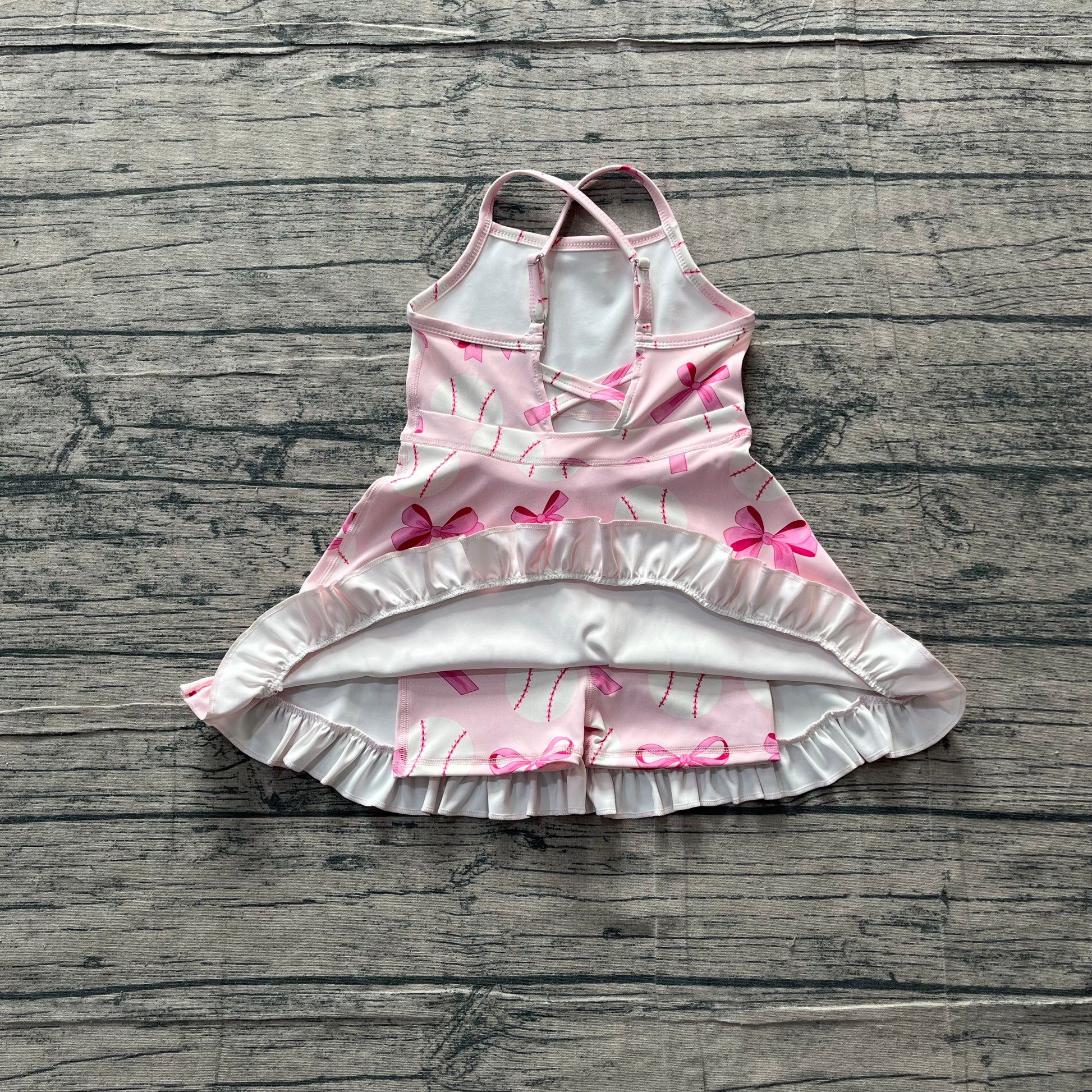 ( No moq ) Preorder Baby Girl Straps Pink Bows Baseball Activity Wear Yoga Knee Length Dress