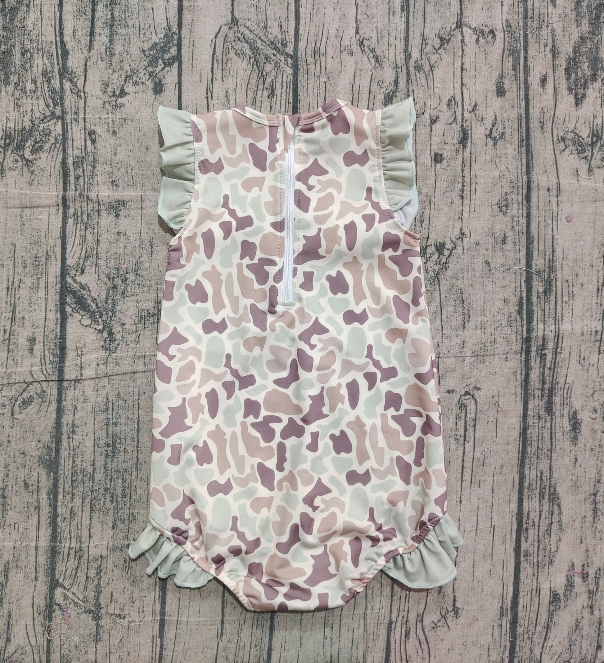 ( No moq ) Preorder Baby Girls Camo Green Ruffle One-piece Swimsuit