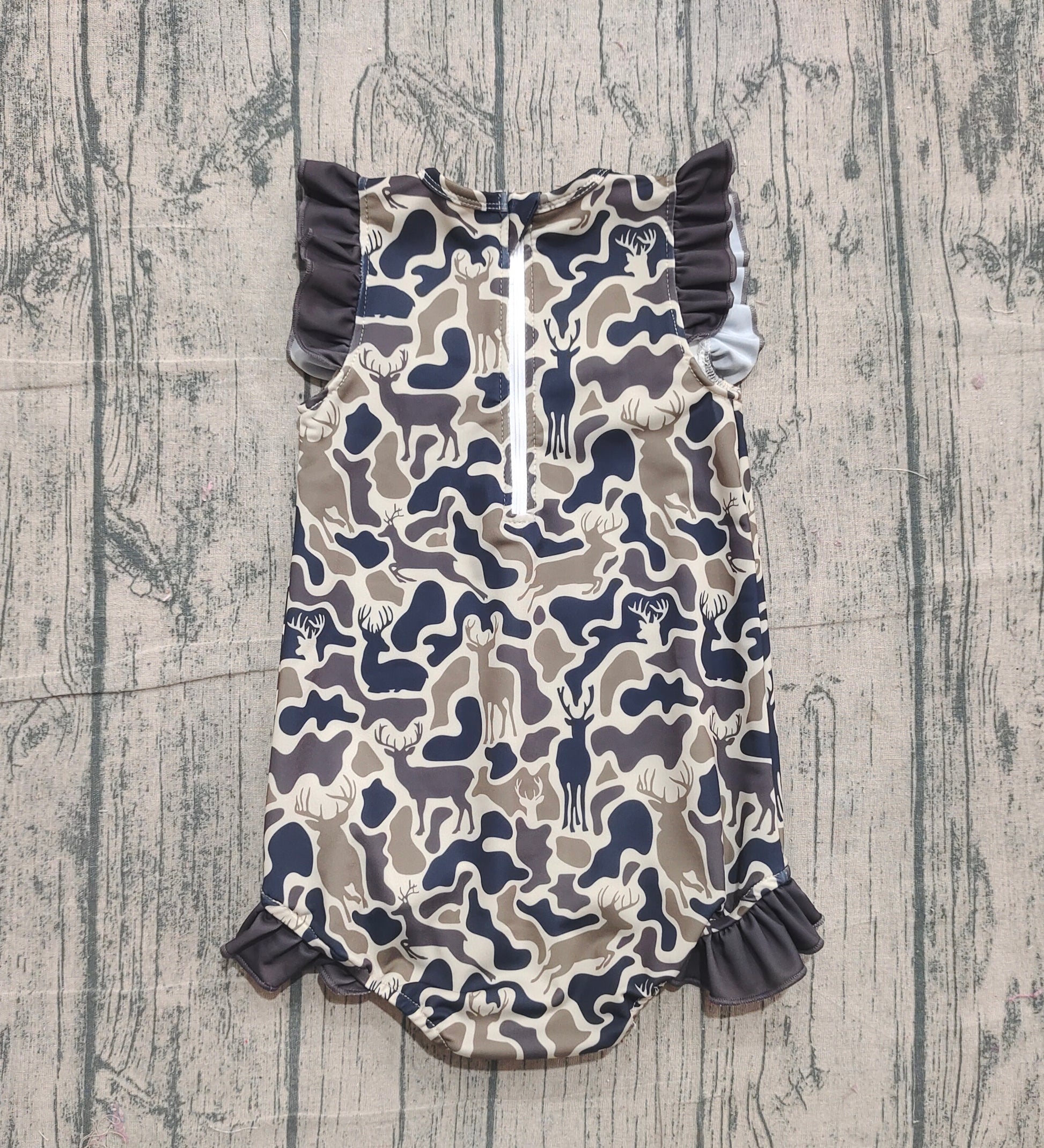 ( No moq ) Preorder Baby Girls Deer Camo Ruffle One-piece Swimsuit