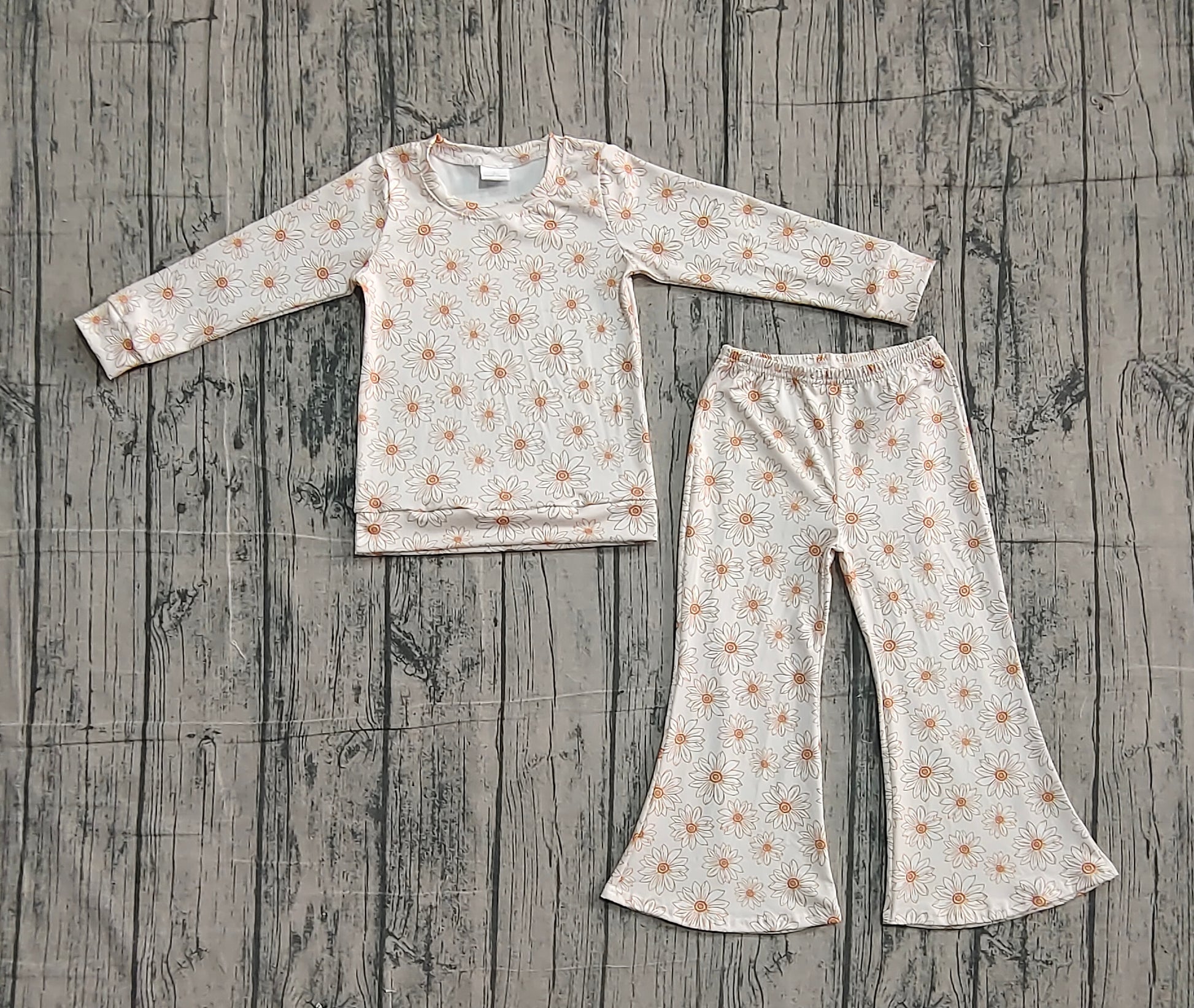 ( No moq ) Preorder Baby Girls Kids Long Sleeves Shirt Pants Flower Clothes Set