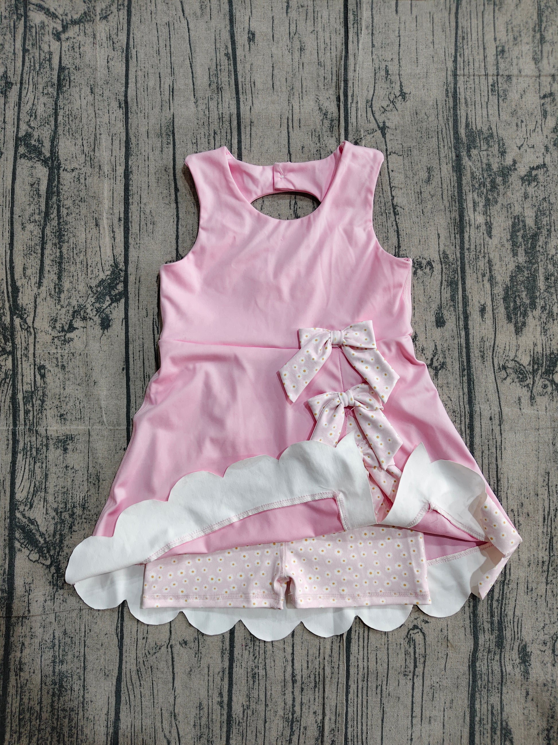 ( No moq ) Preorder Baby Girls Sleeveless Bows Yoga Shorts Ruffle Knee Length Pink Dress