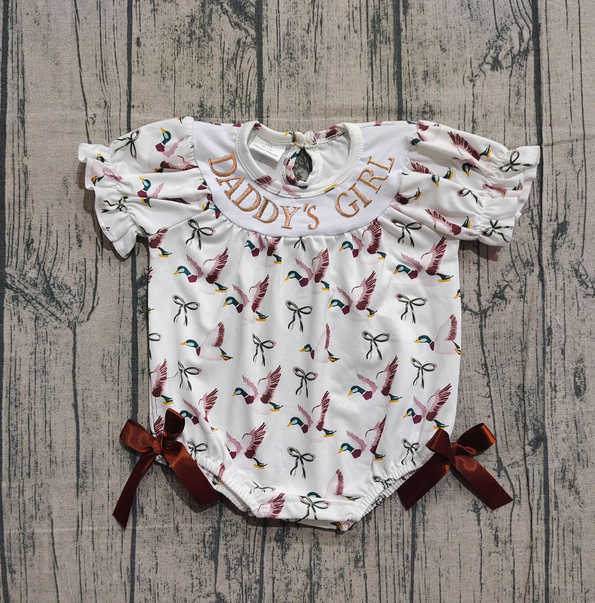 ( No moq ) Preorder Baby Kids Short Sleeves Daddy's Girl Ducks Bows Bubble Smocked Romper