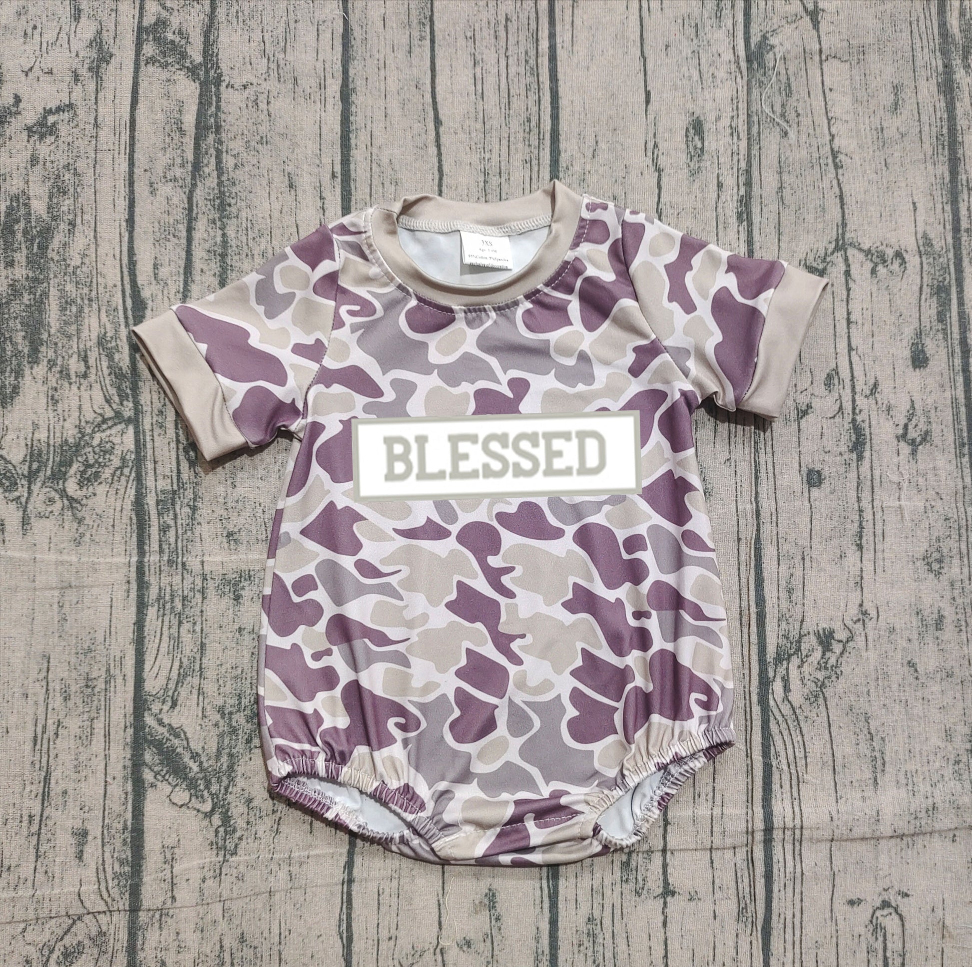 ( No moq ) Preorder Boys Infant Short Sleeves Embroidery Blessed Camo Bubble Romper