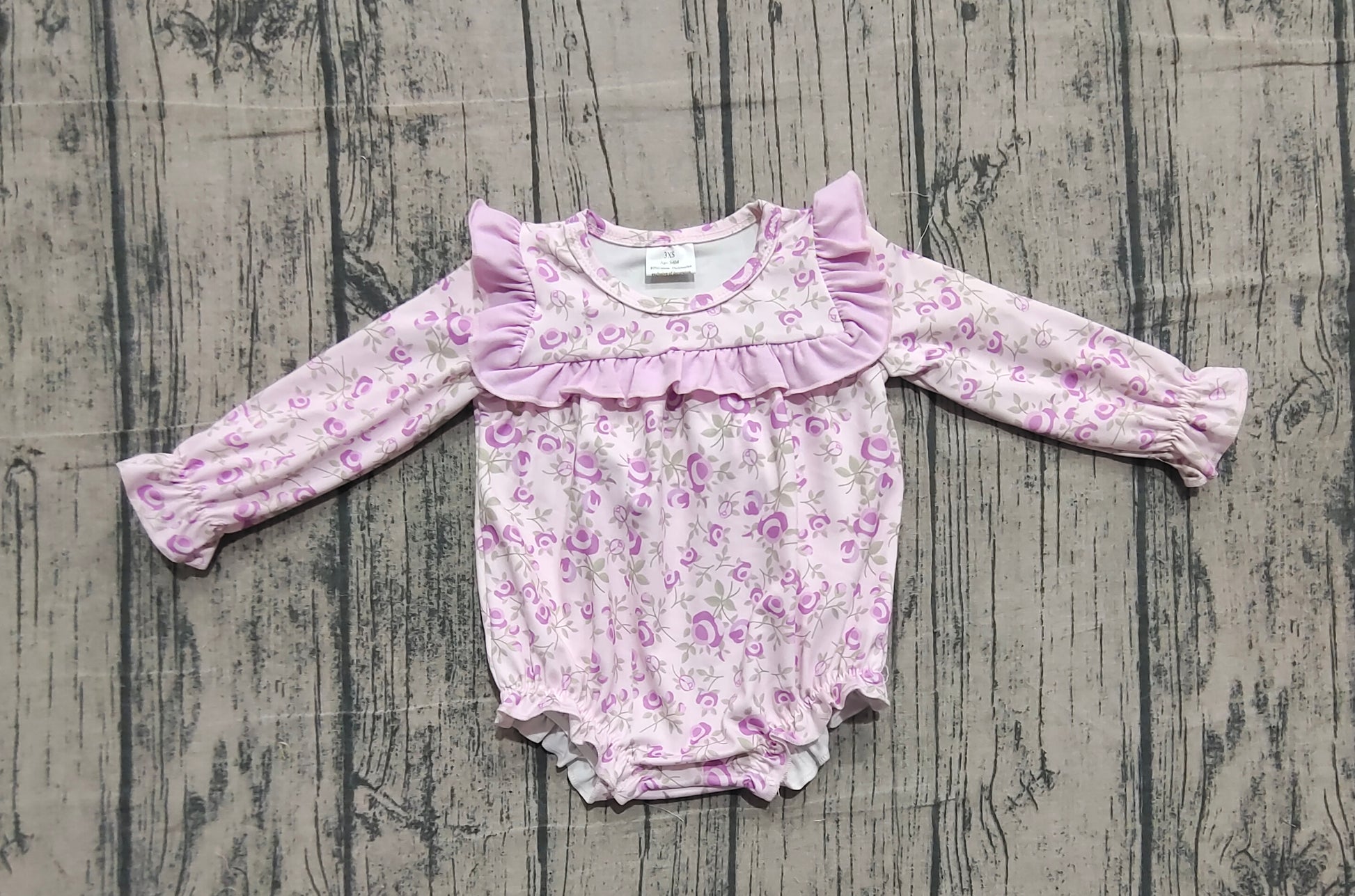 ( No moq ) Preorder Girls Kids Long Sleeves Floral Purple Ruffle Bubble Romper