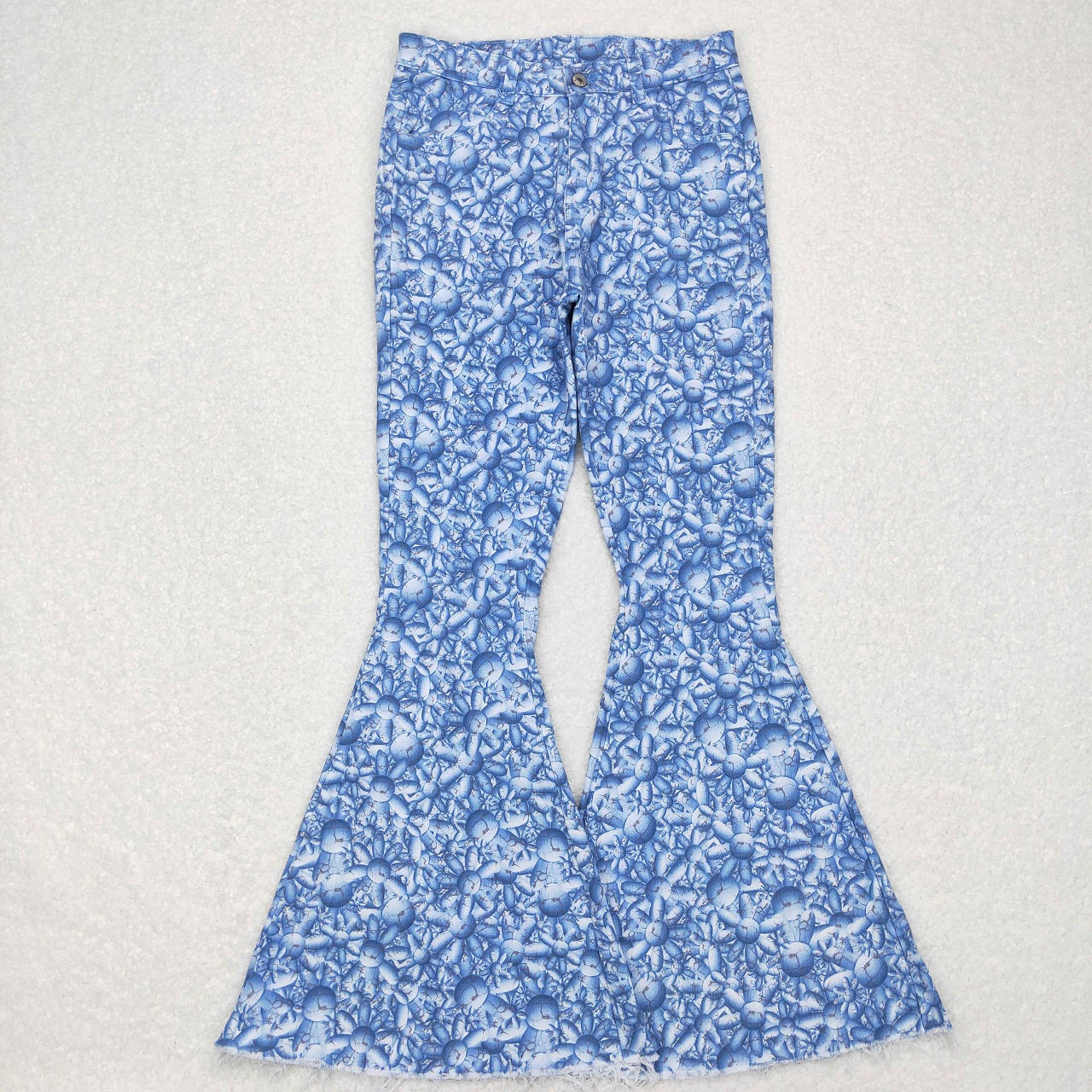P0297 Adult Women Blue Floral Denim Jeans Bell Pants