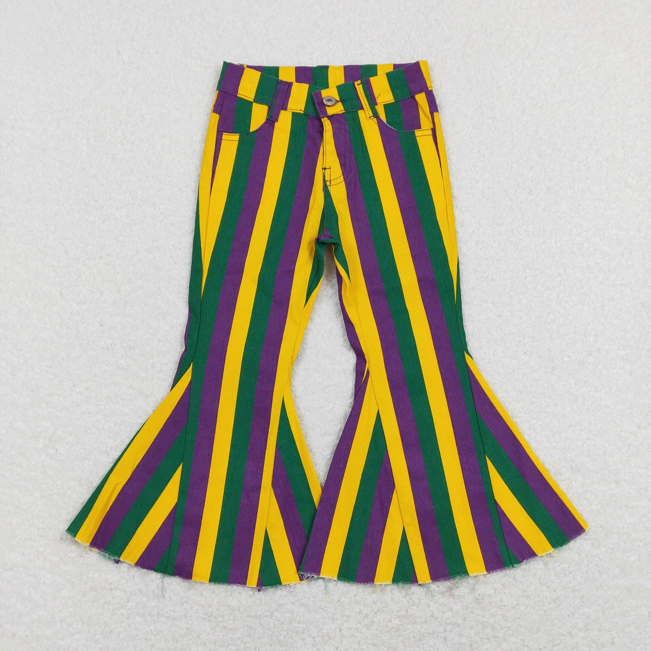 P0327 Mardi Gras Baby Girl Stripes Denim Jeans Bell Pants