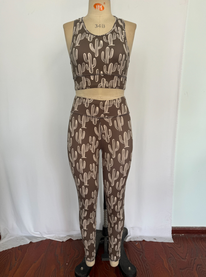 Pre-order Adult Women Sleeveless Cactus Vest Tops Starts Pants Yoga Set