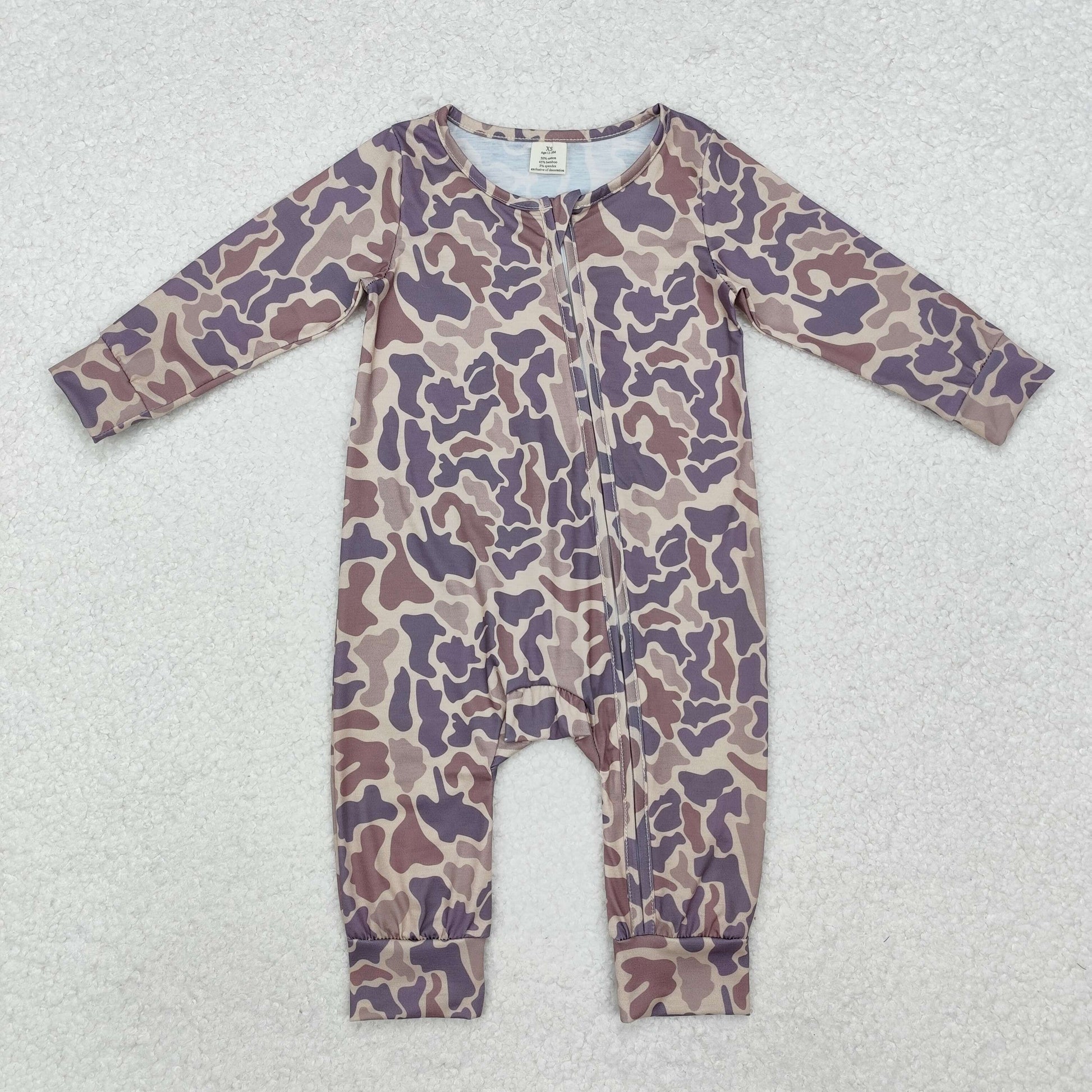 Baby Boy Infant Long Sleeves Camo Zipper Pajamas Bamboo Romper