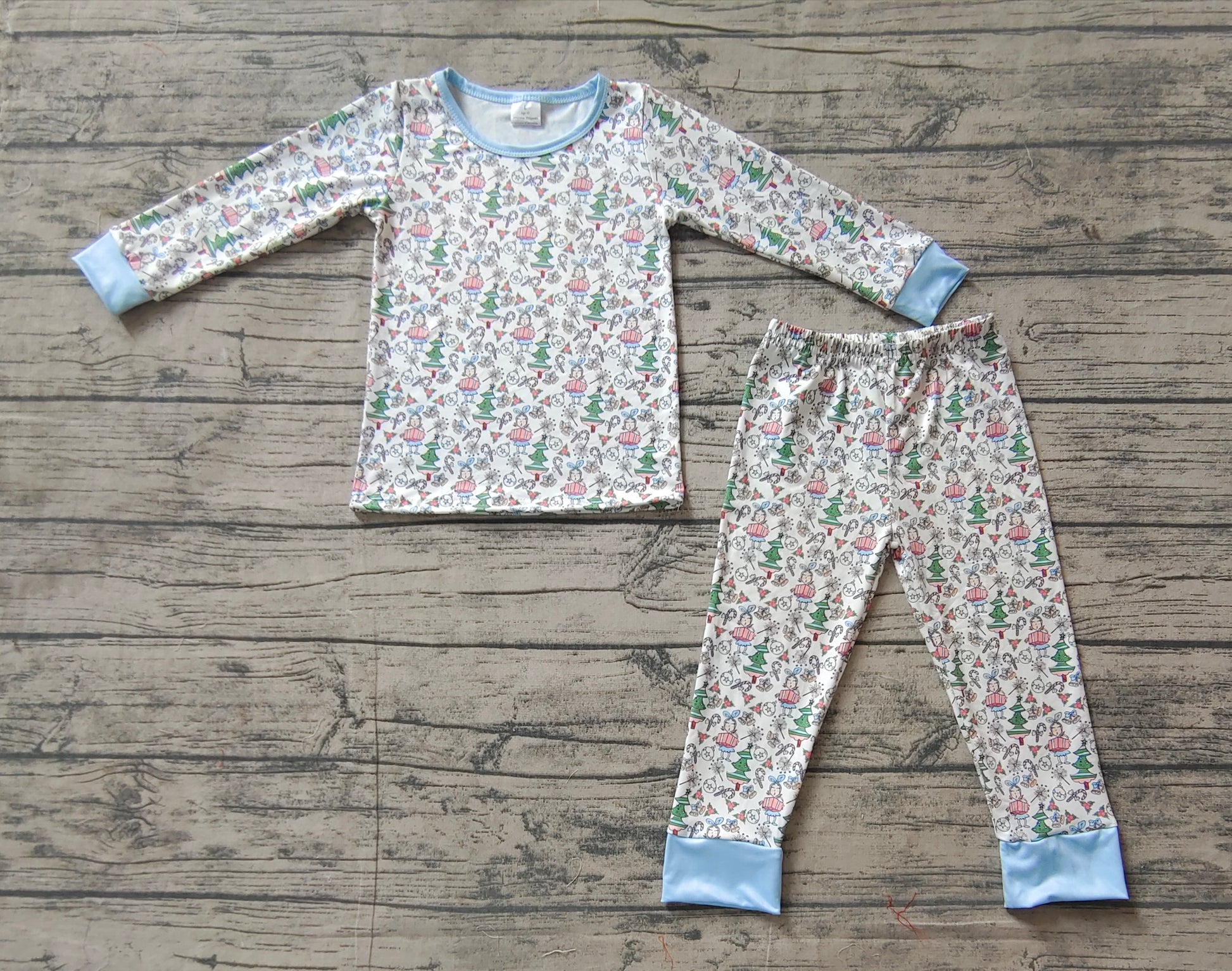 Baby Girl Long Sleeves Christmas Tree Shirt Pants Pajamas Blue Bamboo Set