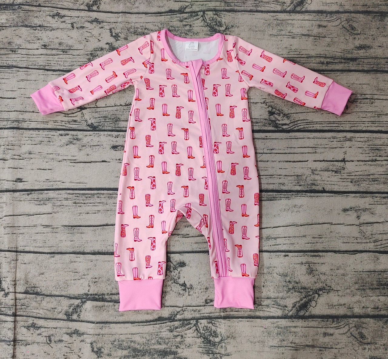 Baby Girl Infant Long Sleeves Western Boots Pink Zipper Bamboo Romper