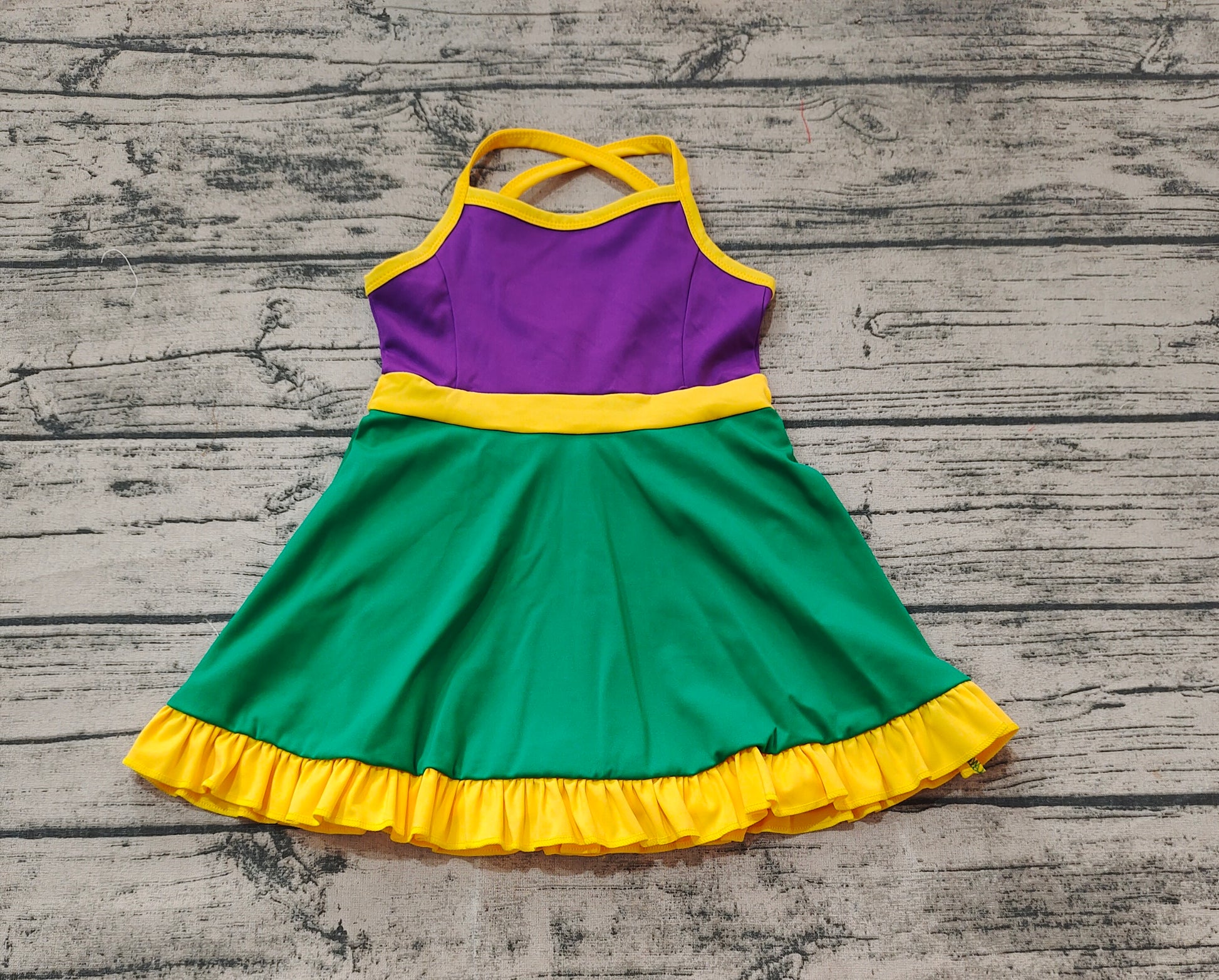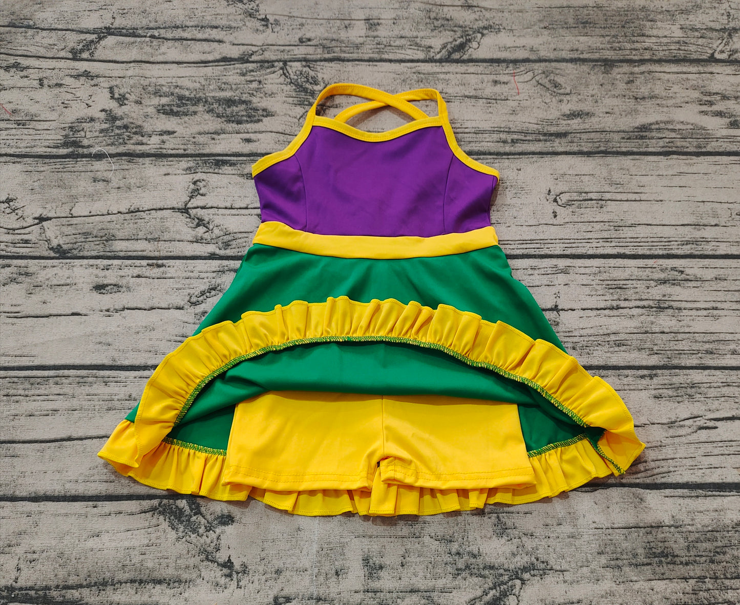Baby Girl Sleeveless Mardi Gras Purple Green Yellow Athletic Active Wear Knee Length Shorts Dress