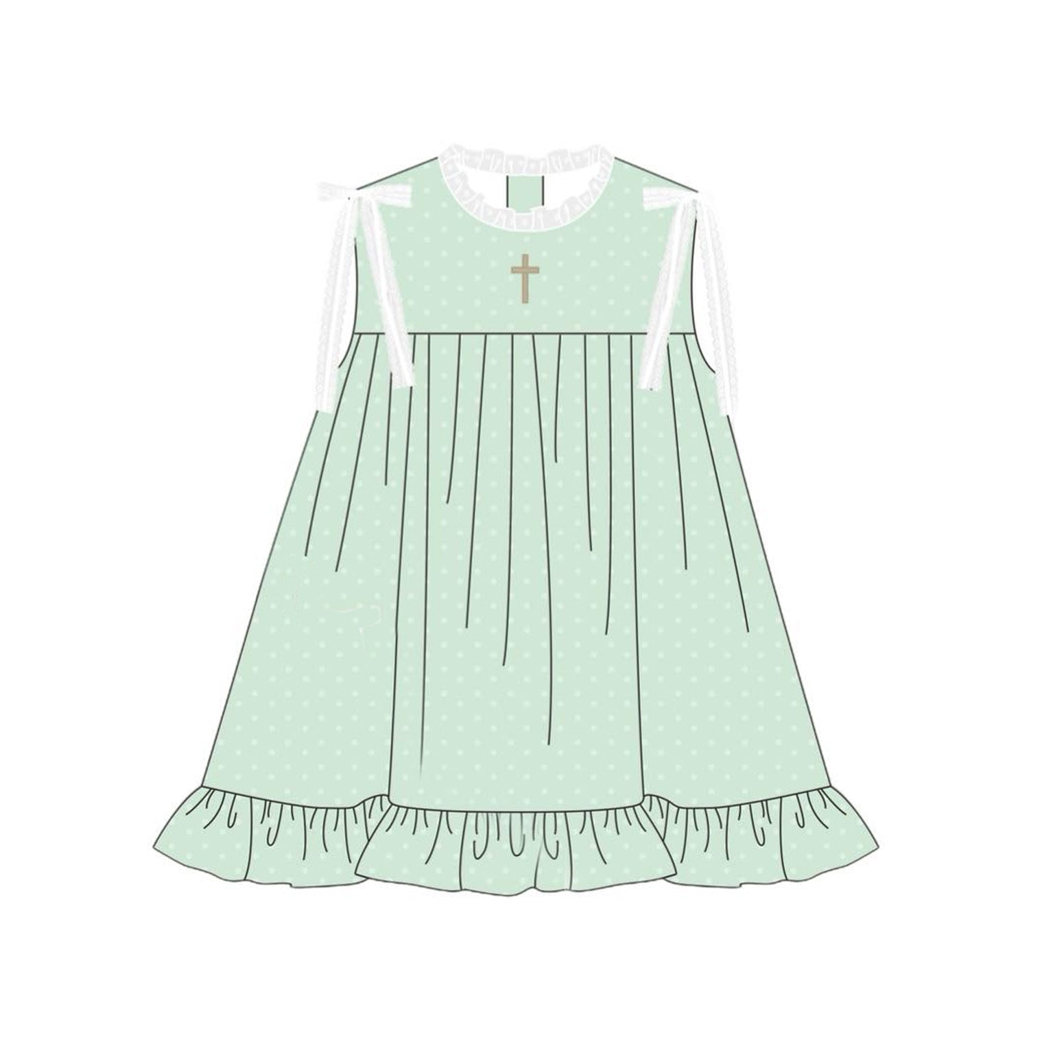 ( Moq 5 ) Preorder Girls Sleeveless Cross Bows Easter Green Knee Length Dress