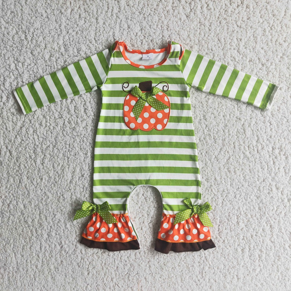 Promotion 6 A10-26 Baby Girl Embroidery Pumpkin Stripes Fall Romper