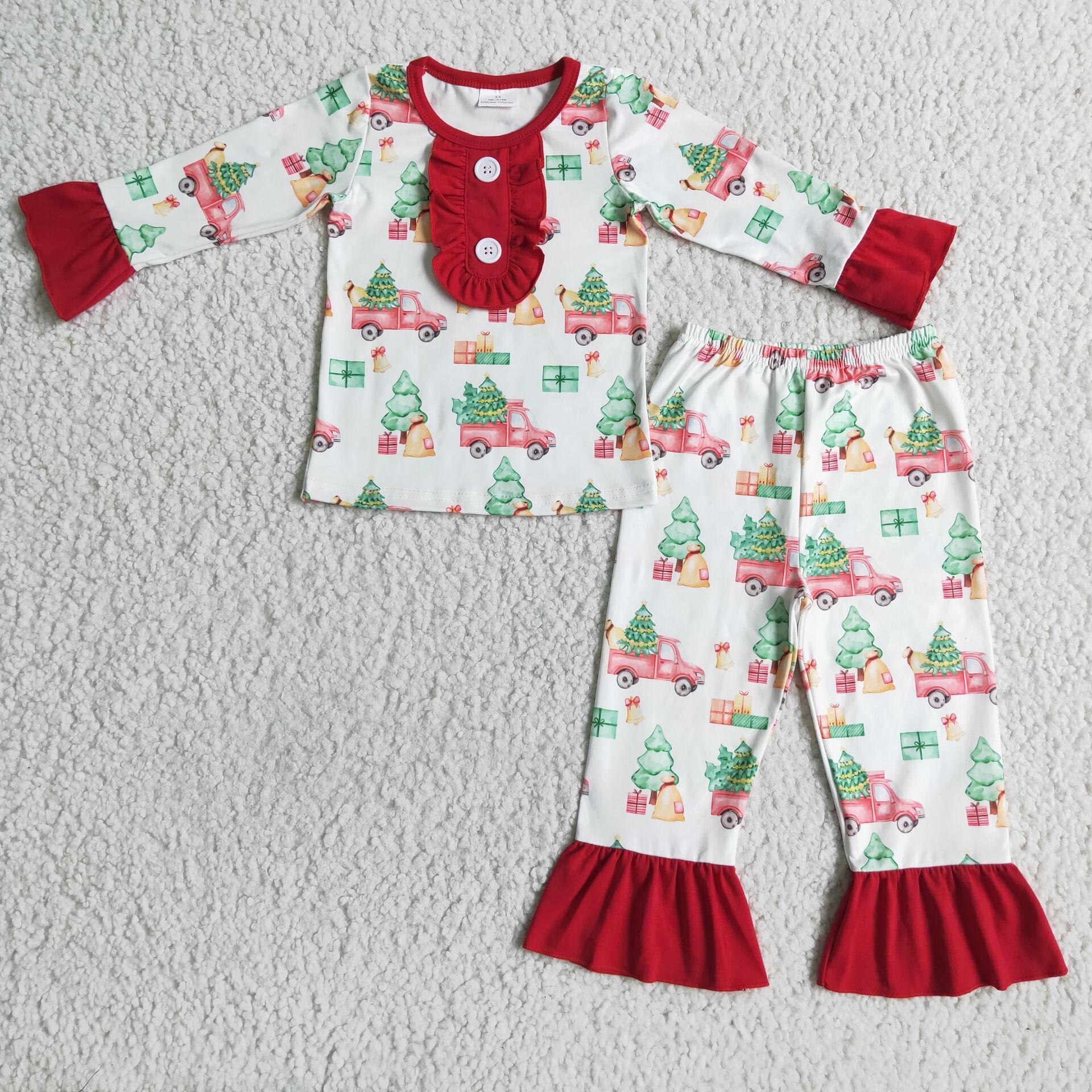 Promotion 6 B3-38 Christmas Baby Girl Long Sleeves Tree Truck Pants Outfit Pajamas