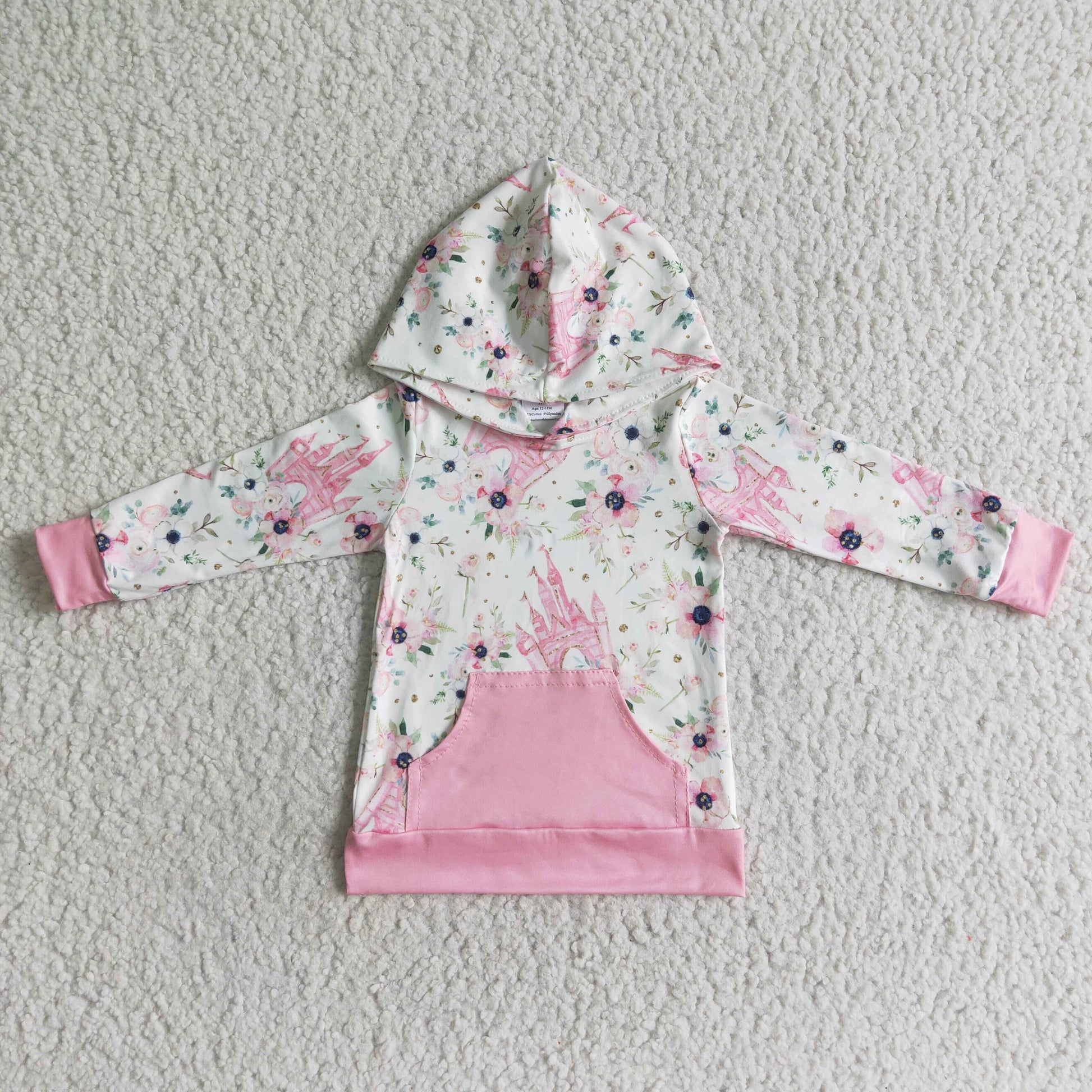 Promotion Baby Girl Long Sleeve Flower Castle Hoodie Pocket Shirt Tops RTS