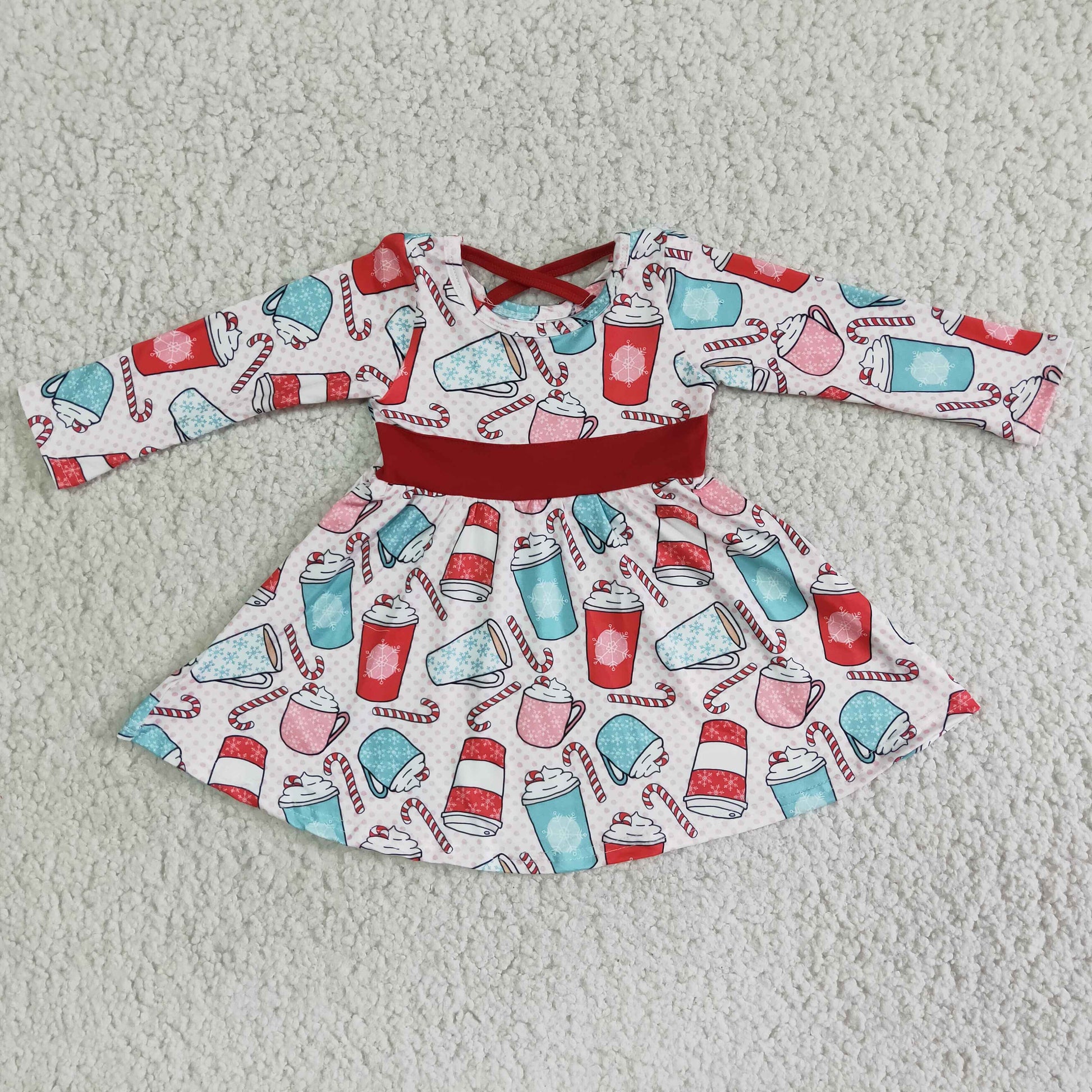 Promotion Baby Girl Long Sleeves Cups Candy Cane Twirl Christmas Dress RTS