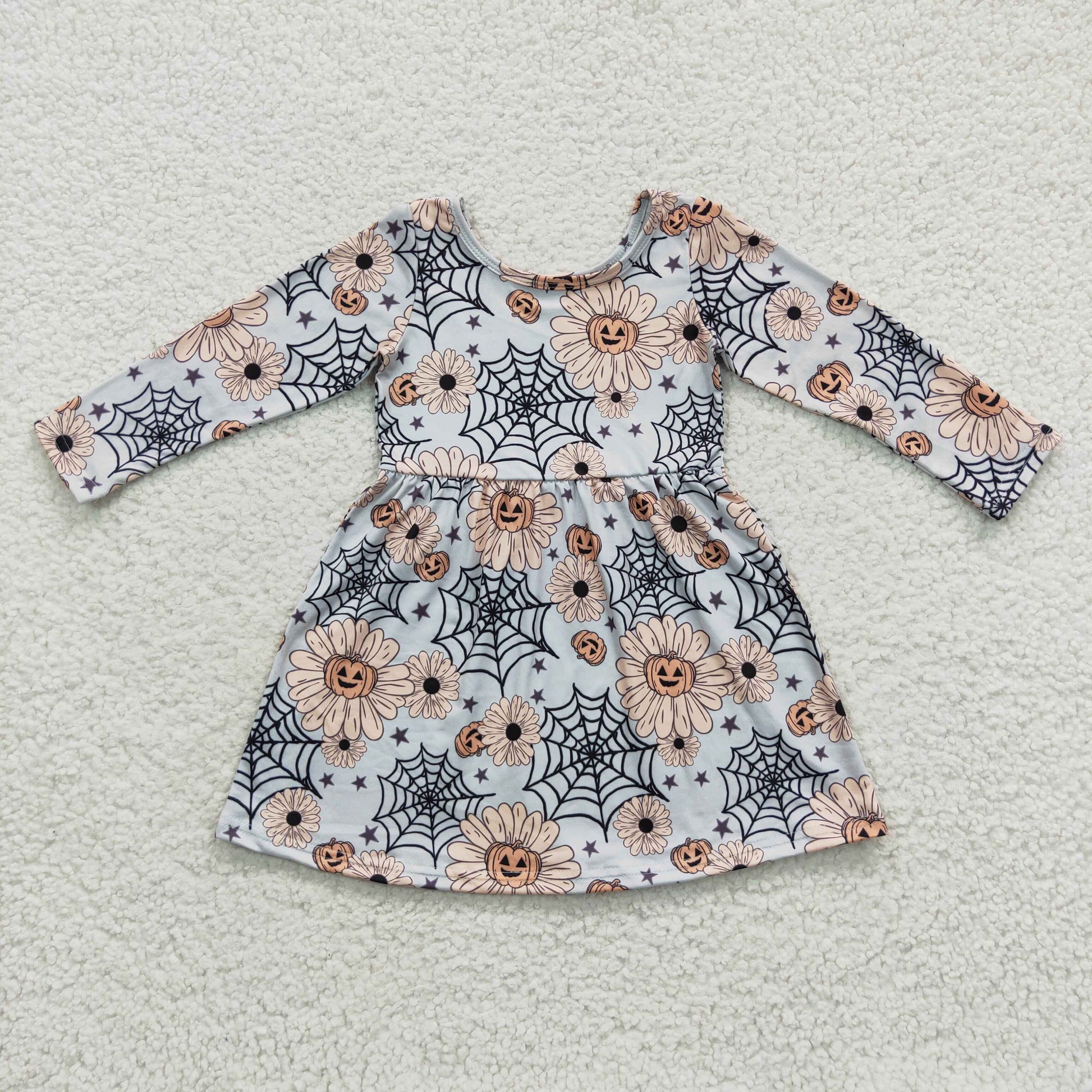 Promotion Baby Girl Long Sleeves Halloween Pumpkins Flower Dress RTS