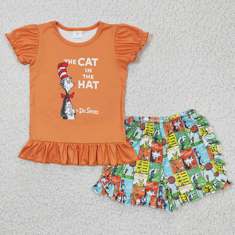 Promotion Baby Girl Short Sleeves Dr Reading Orange Shirt Shorts Set
