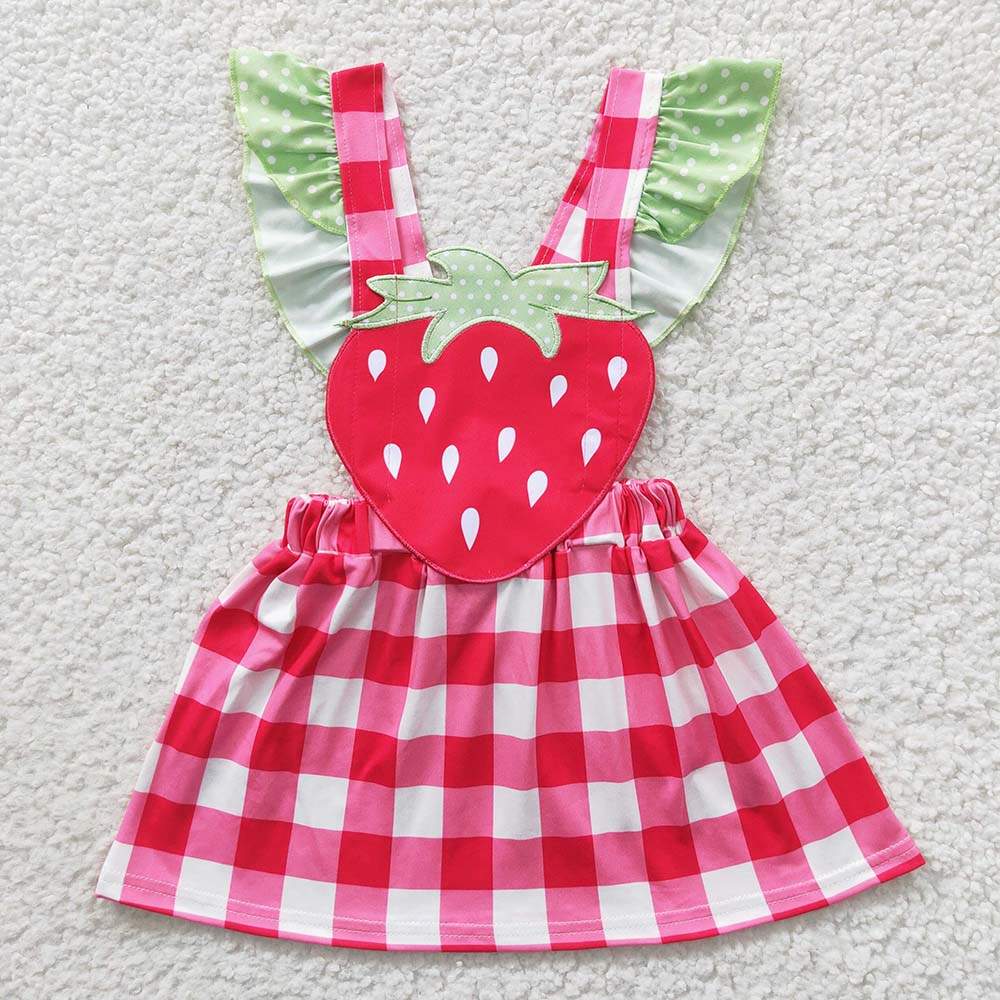 Promotion Baby Girl Short Sleeves Embroidery Strawberry Summer Checked Dress