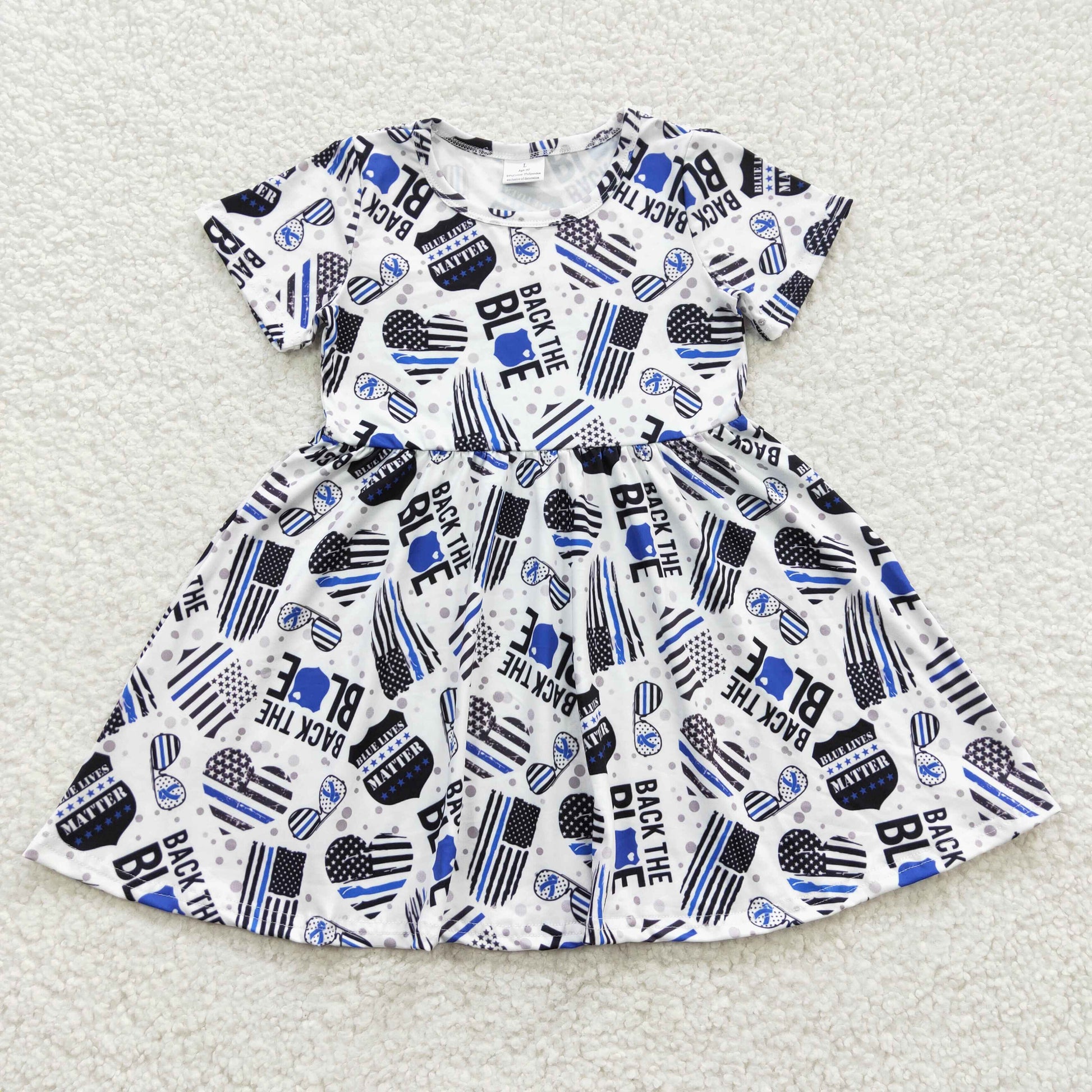 Promotion Baby Girl Short Sleeves Hearts Flags Blue Knee Length Dress RTS