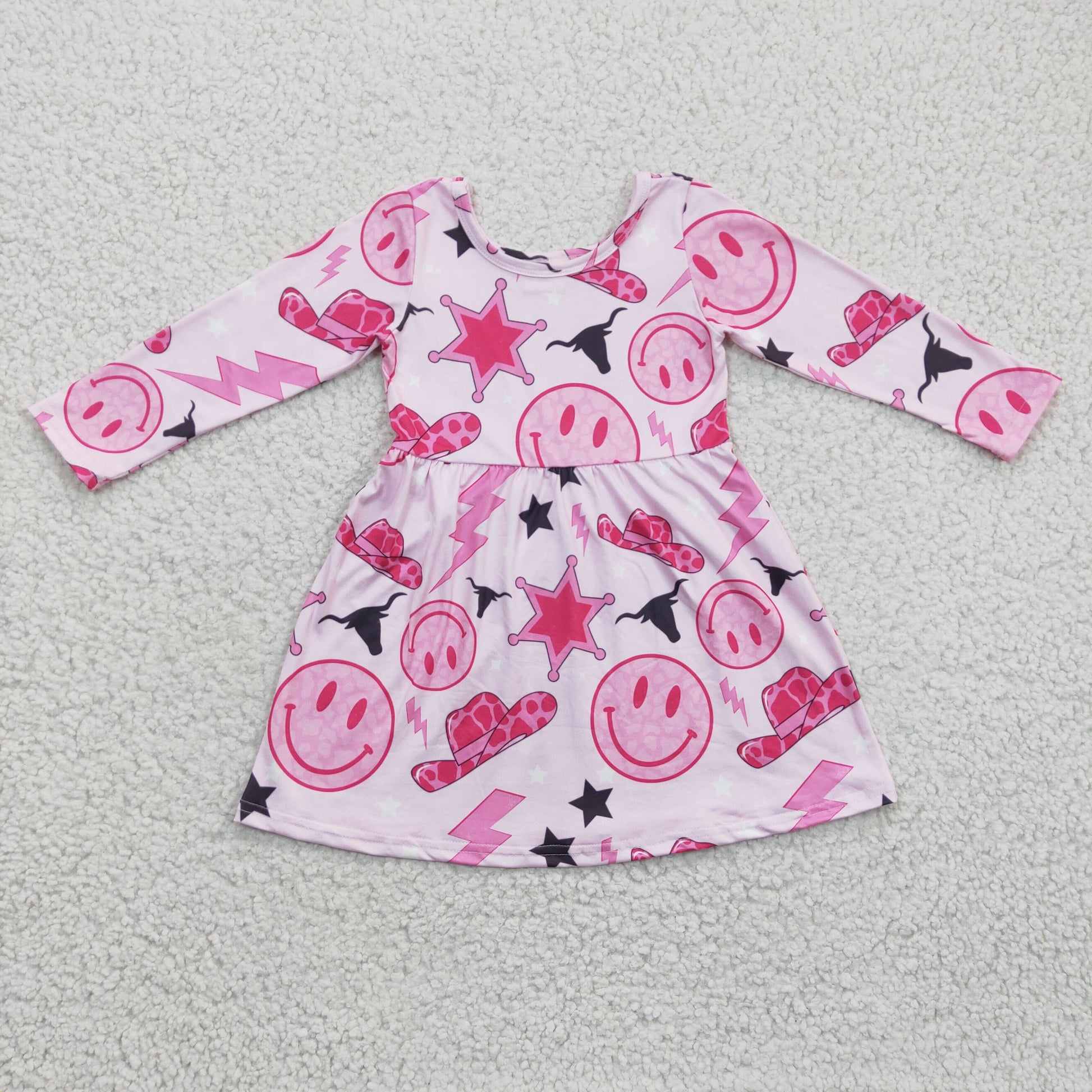 Promotion Baby Girl Western Pink Long Sleeves Smile Hats Dress RTS