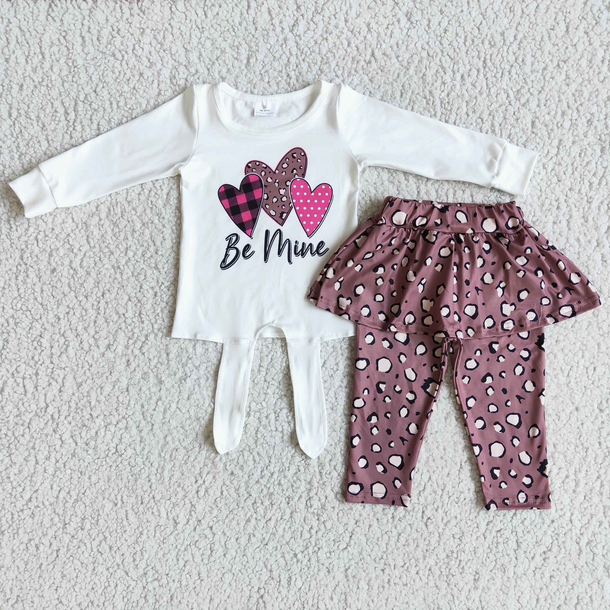 Promotion Baby Girls Kids Long Sleeves Hearts Shirt Leopard Skirt Pants Valentine's Set RTS