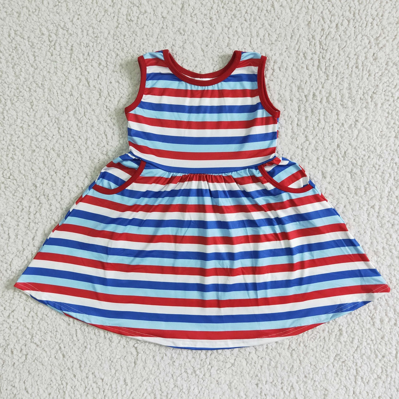 Promotion July 4th Baby Girl Summer Stripes Pocket Twirl Dress