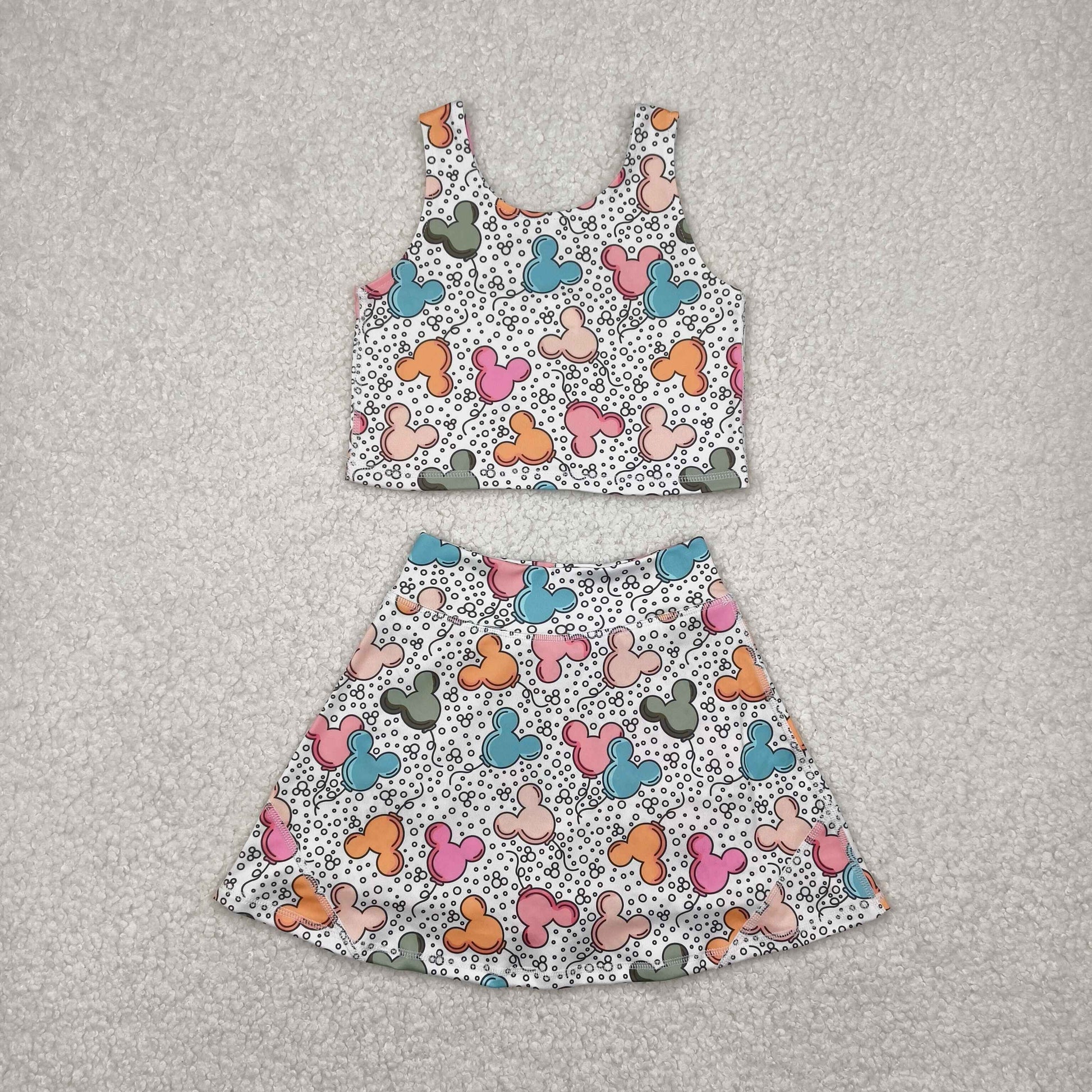 r Baby Girl Sleeveless Cartoon Mouse Balloons Tops Skort Yoga Active Set RTS