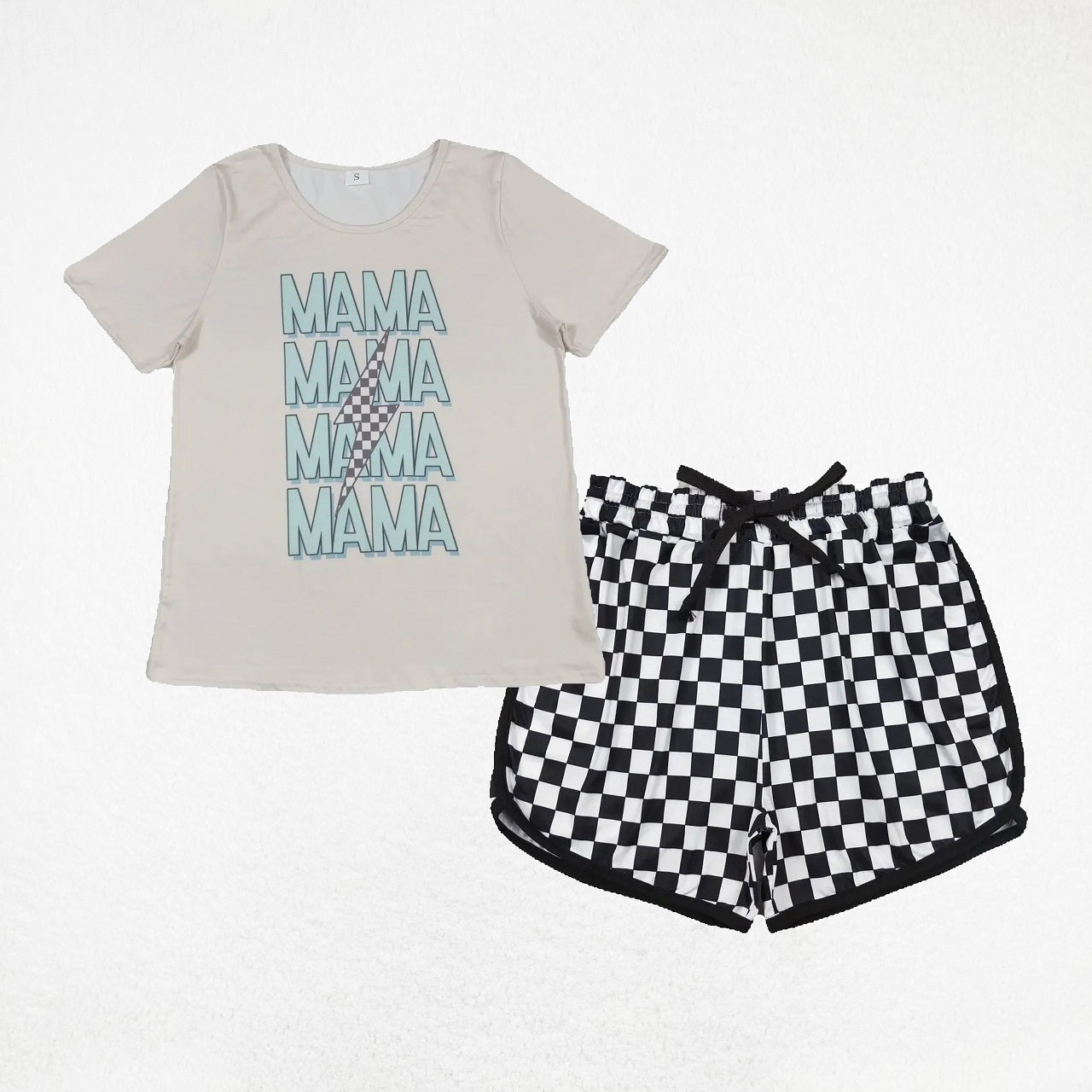 RTS Adult Women Short Sleeves Mama Shirt Plaid Shorts Set RTS