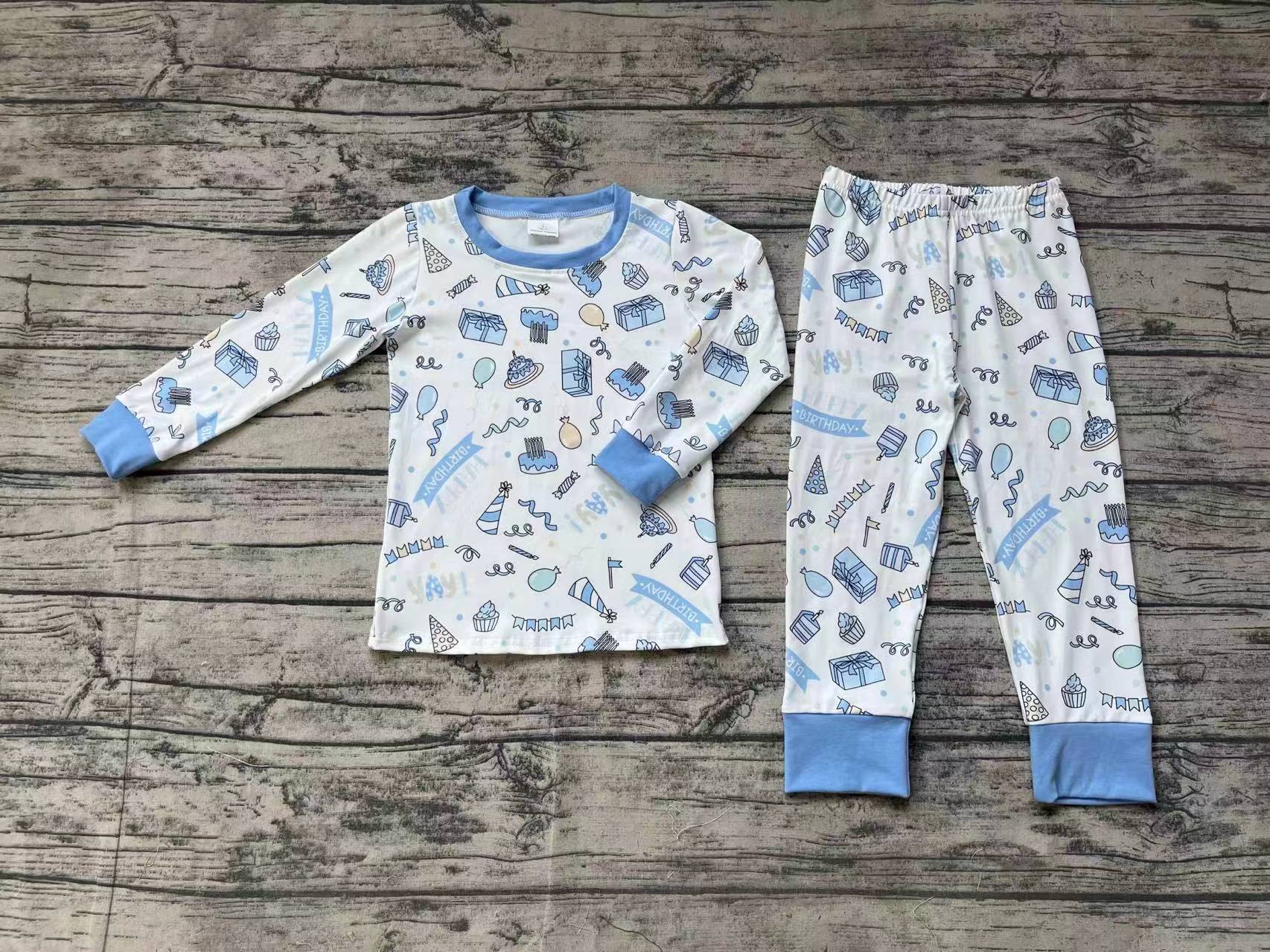 RTS Baby Boy Long Sleeves Birthday Shirt Pants Pajamas Blue Set