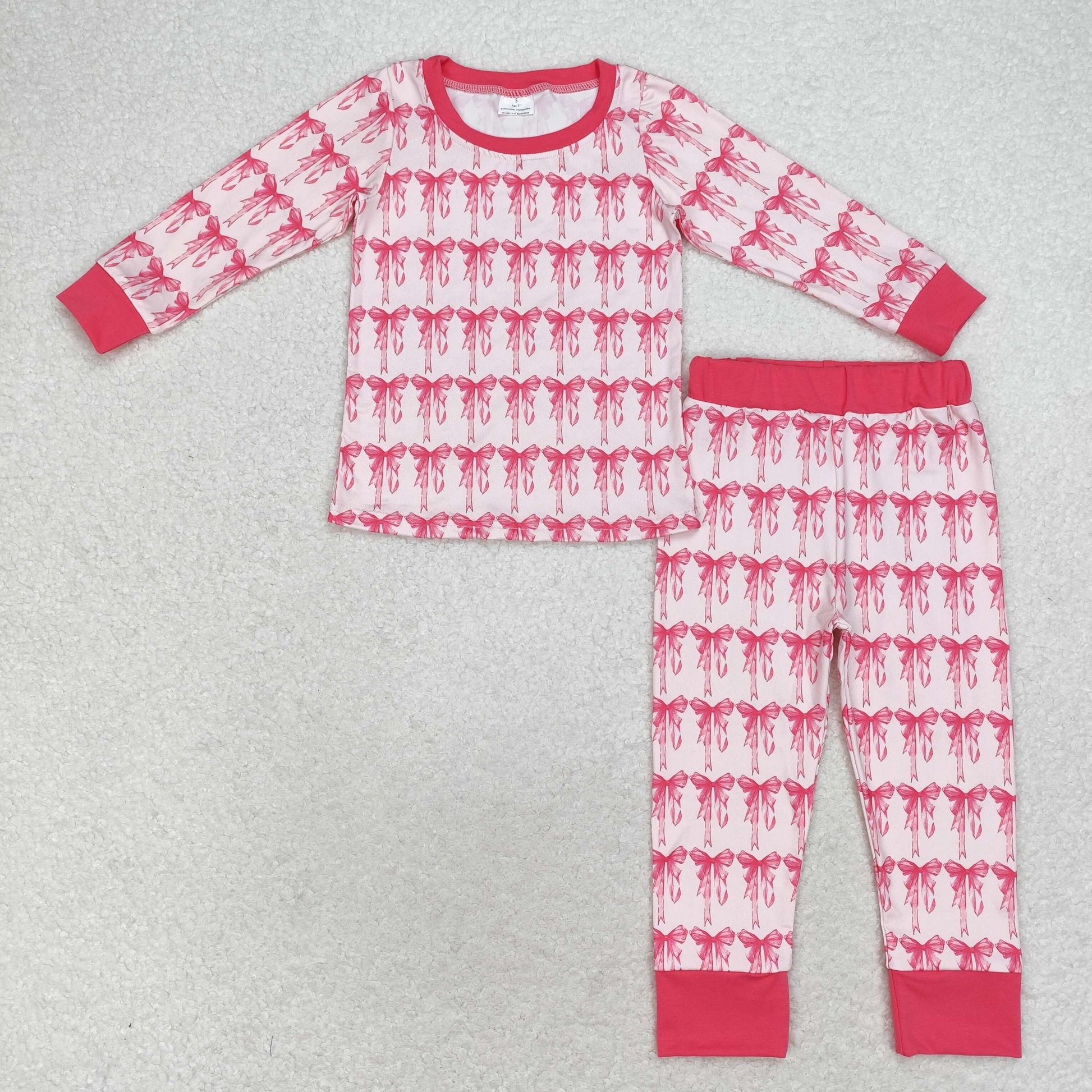 RTS Baby Girl Long Sleeves Pink Bows Shirt Pants Pajamas Christmas Set