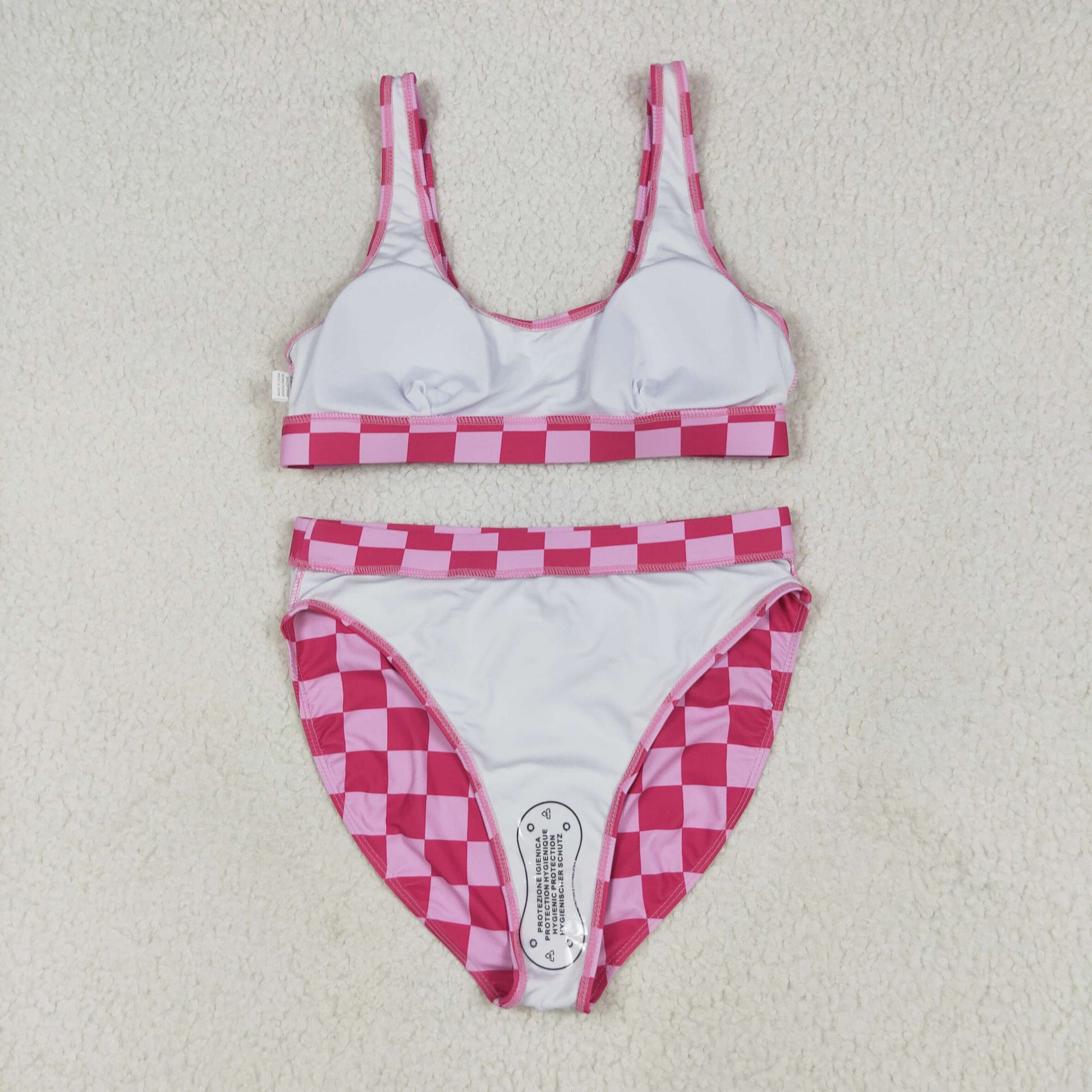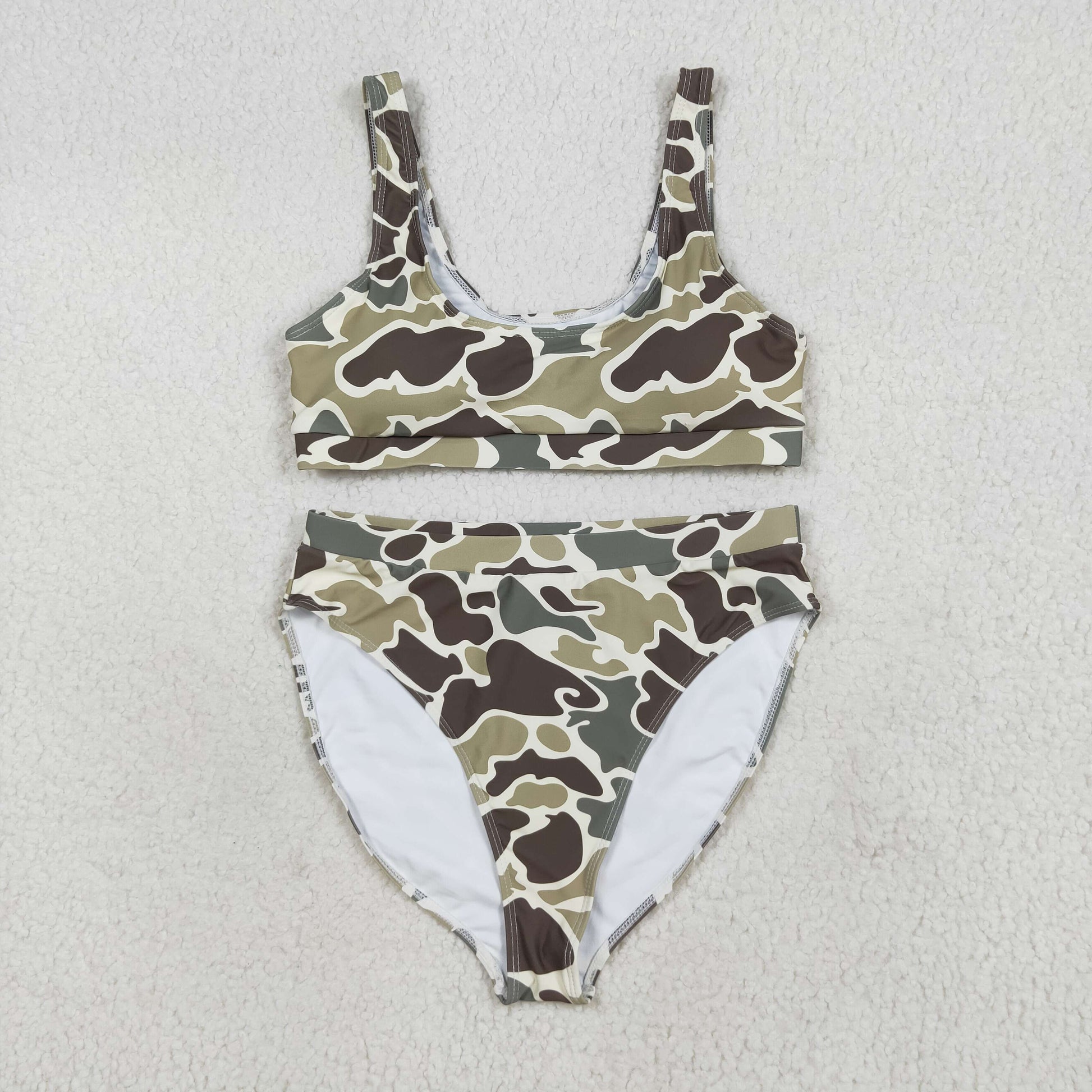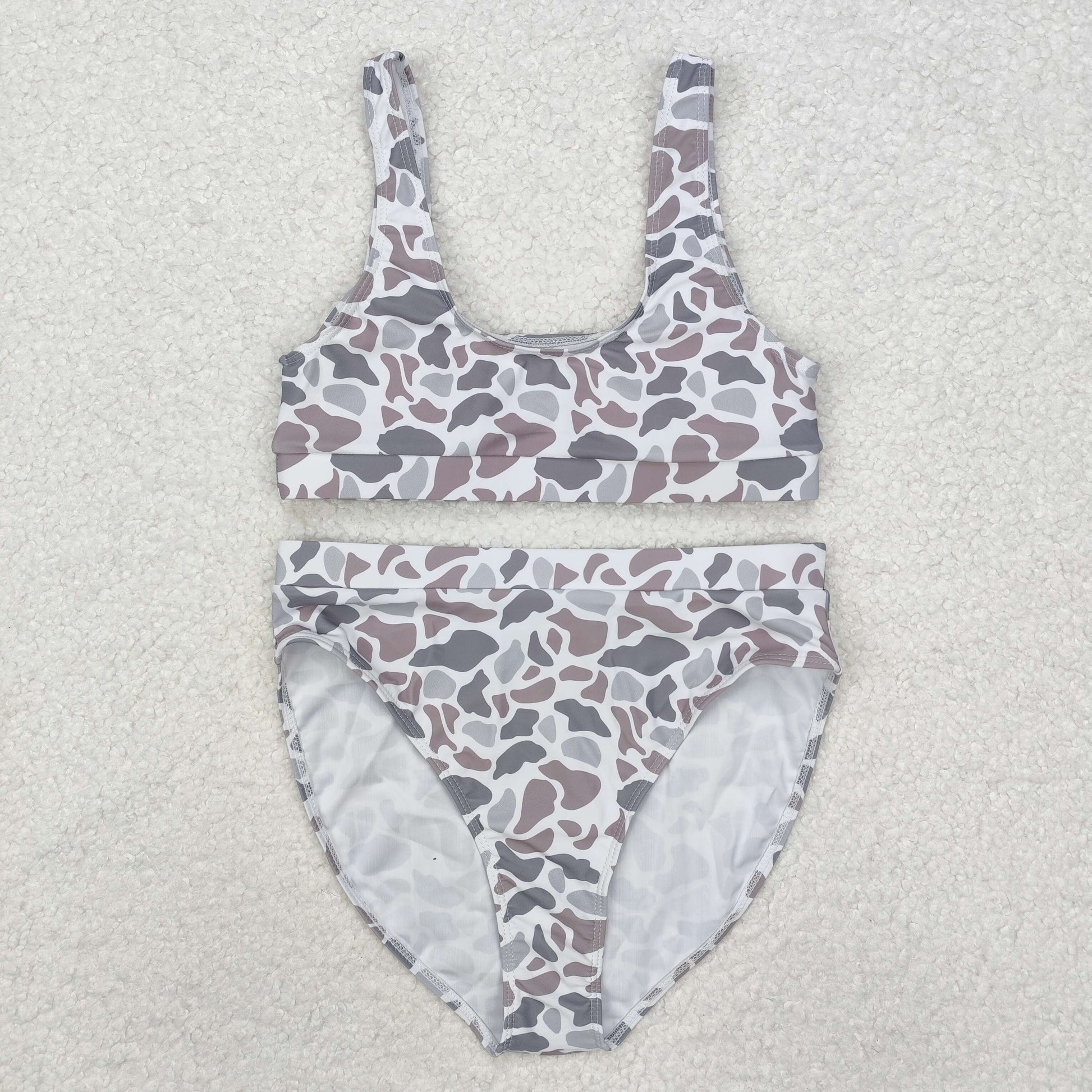 Adult Women Sleeveless Plaid Camo Tops Shorts Sibling Summer Swimsuit Set RTS