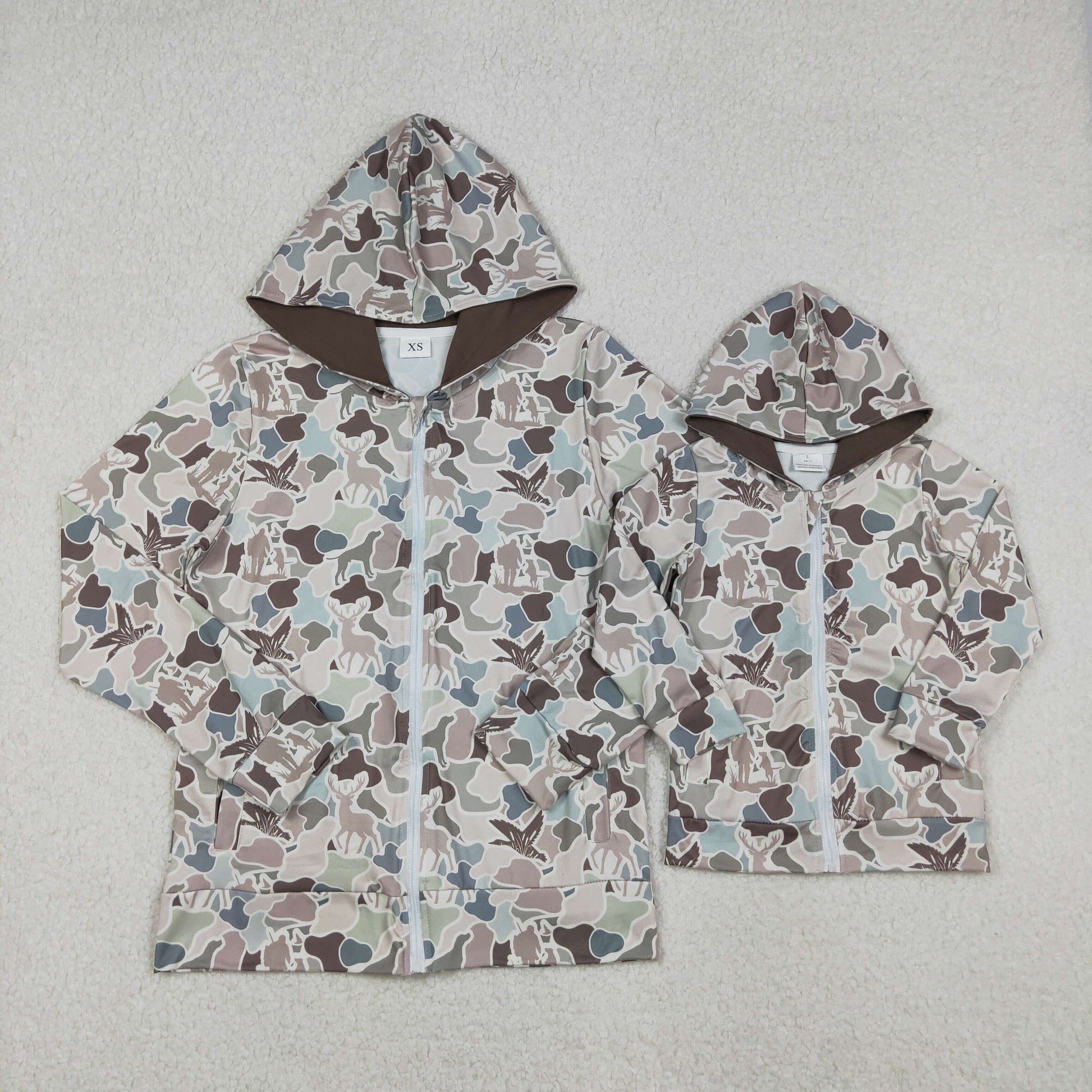 Sibling Baby Boys Adult Men Dogs Ducks Deer Camo Zipper Hoodie Pockets Hunting Cardigans Coats RTS