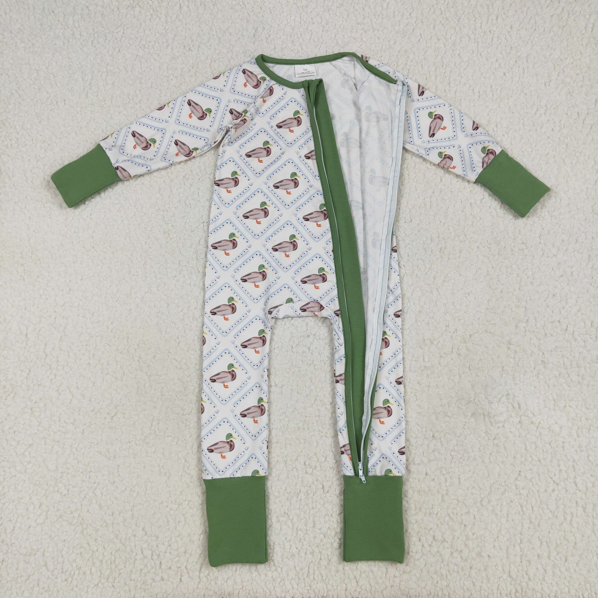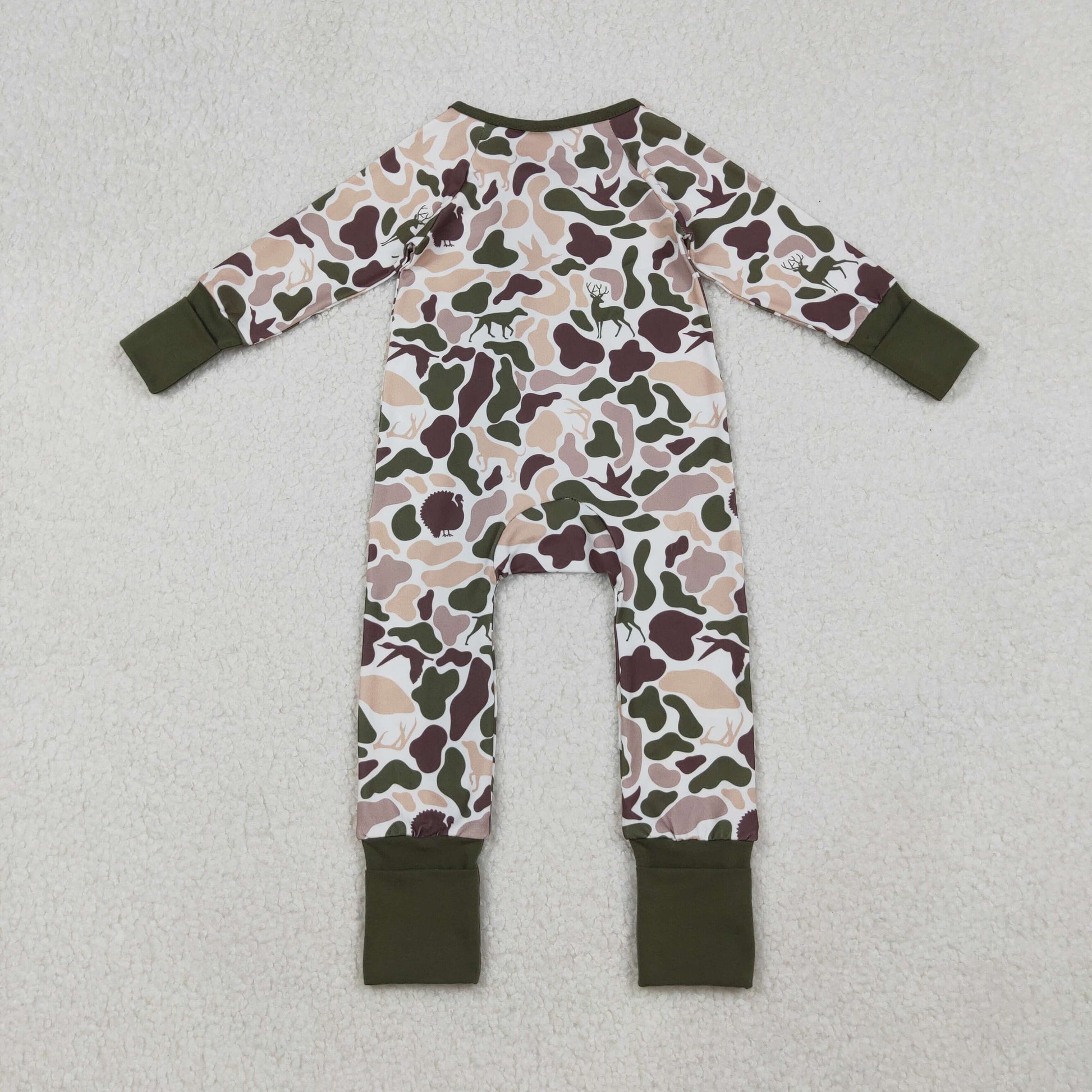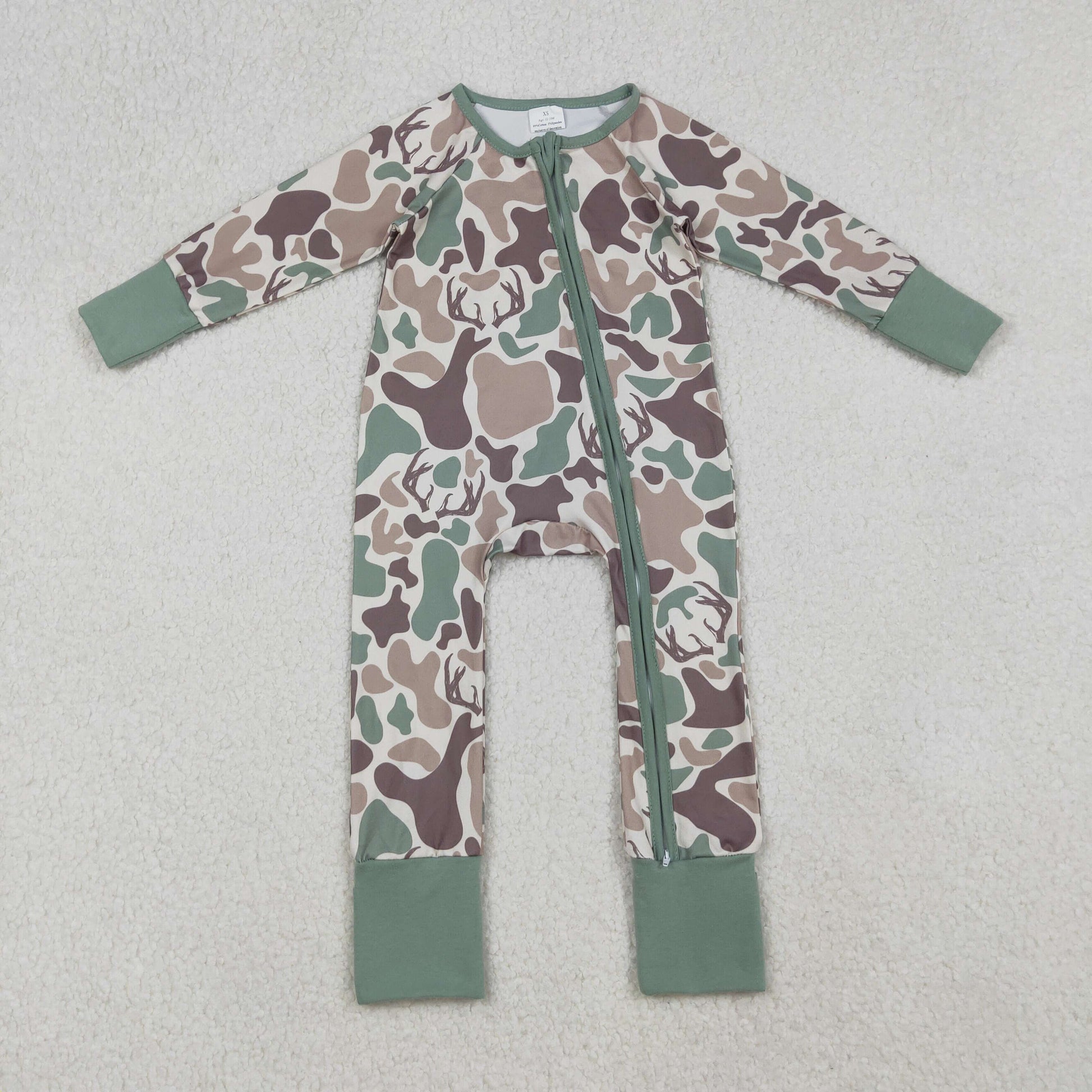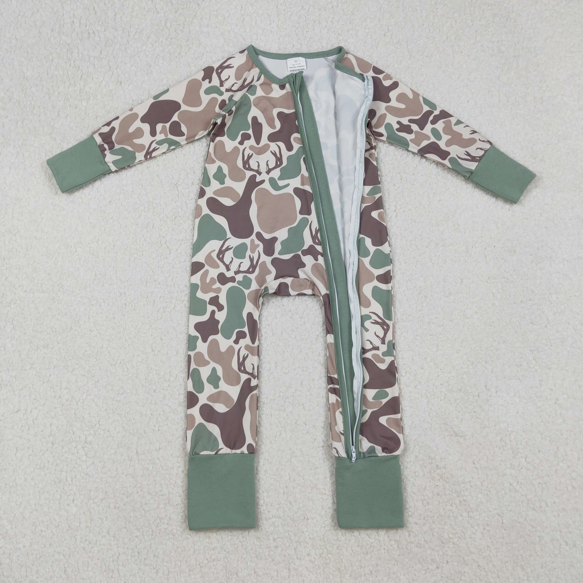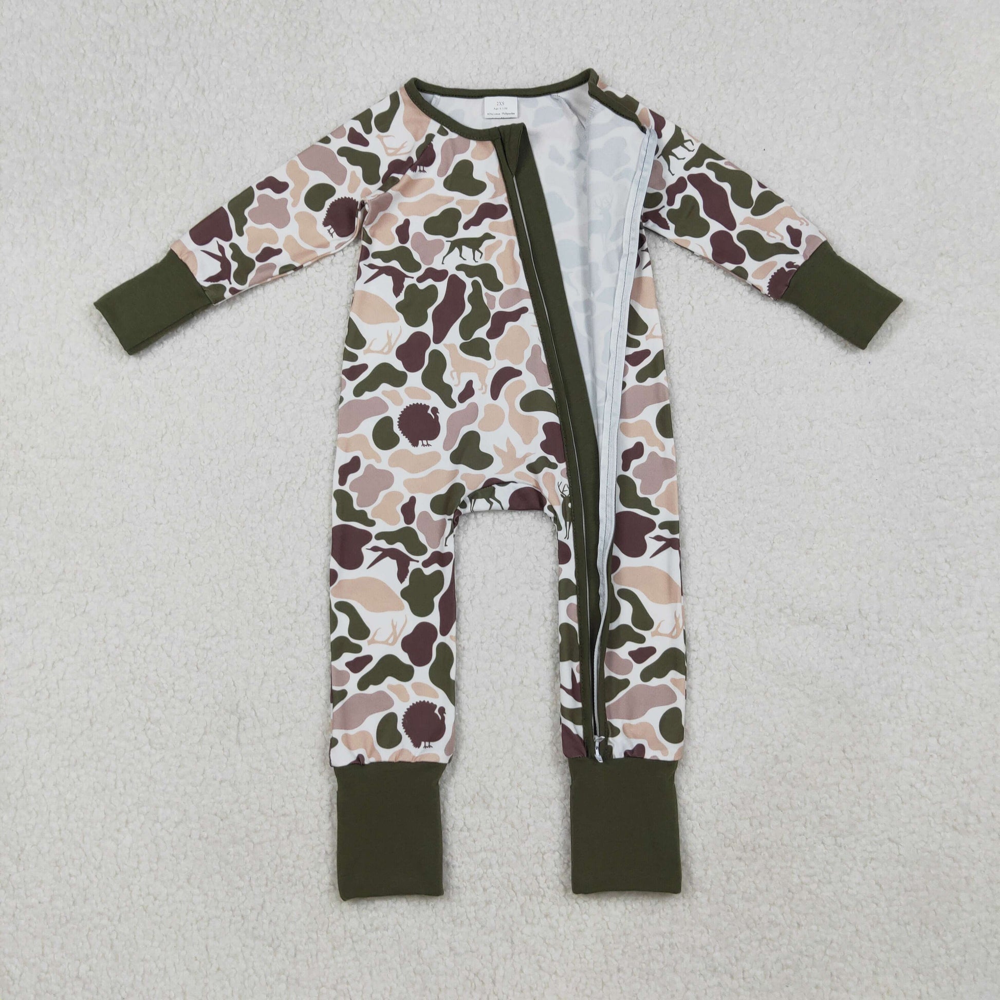 Sibling Baby Boys Kids Dogs Ducks Deer Camo Zipper Footie Sleeper Hunting Rompers RTS