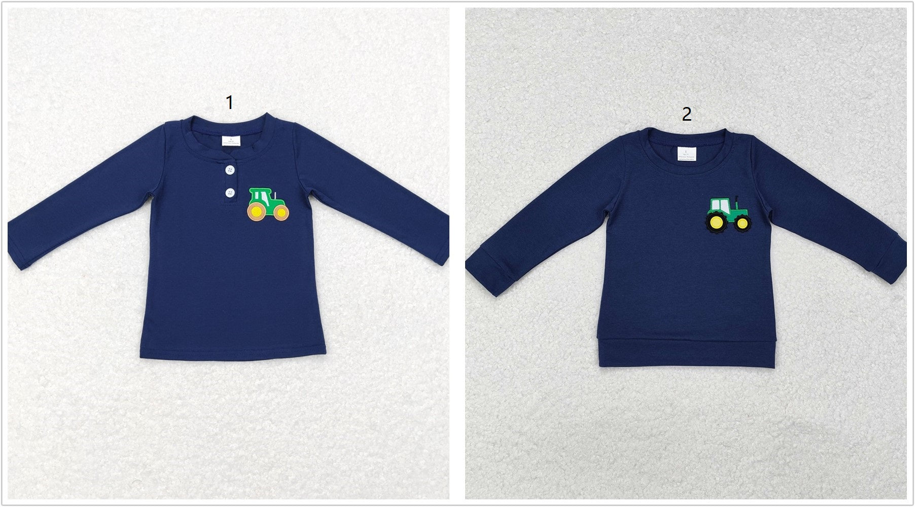 Sibling Boys Kids Navy Long Sleeves Embroidery Trucks Farm Cotton Shirt Tops