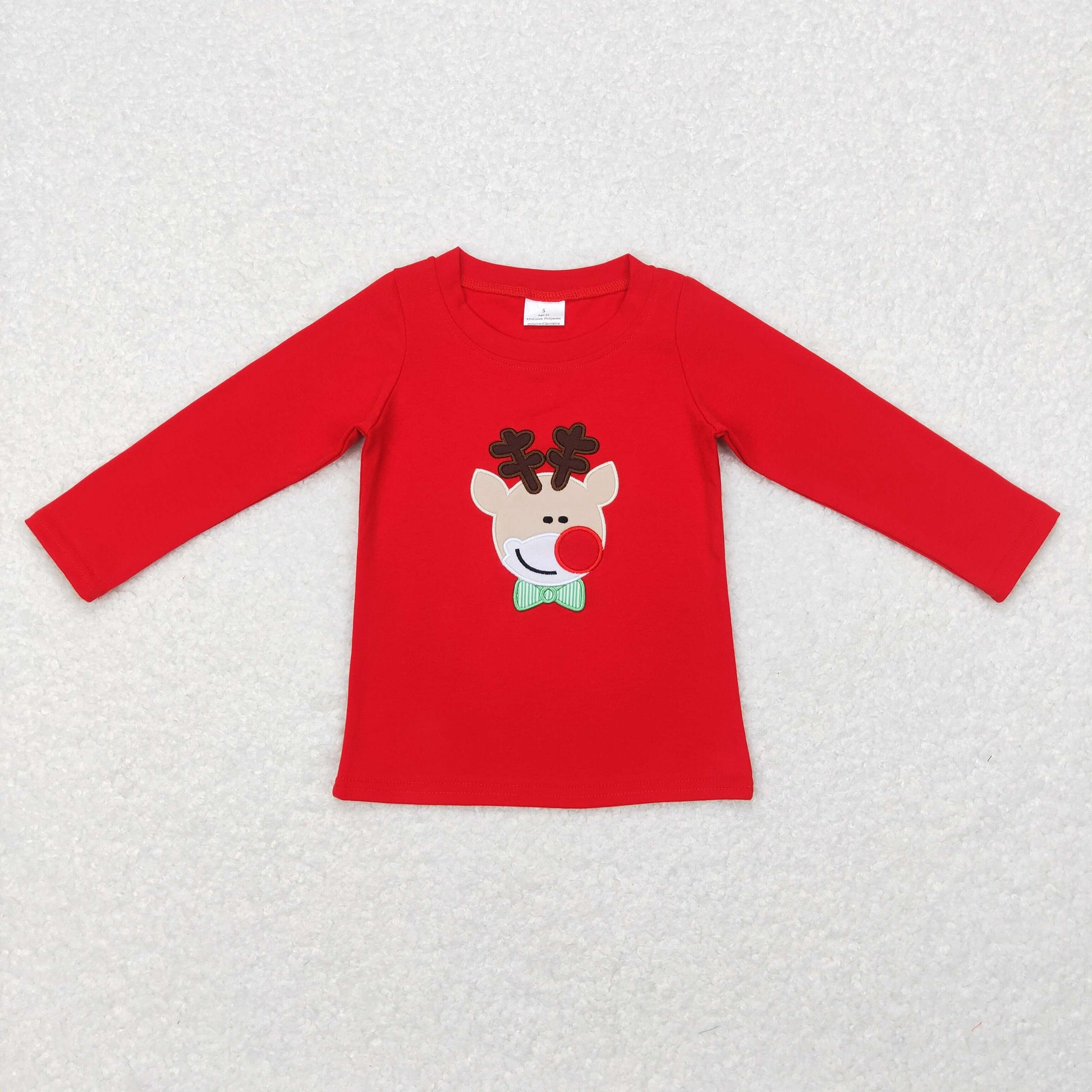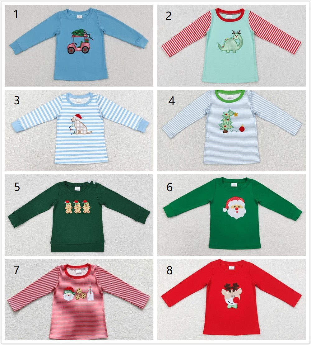Sibling Boys Kids Long Sleeves Embroidery Christmas Shirt Tops RTS