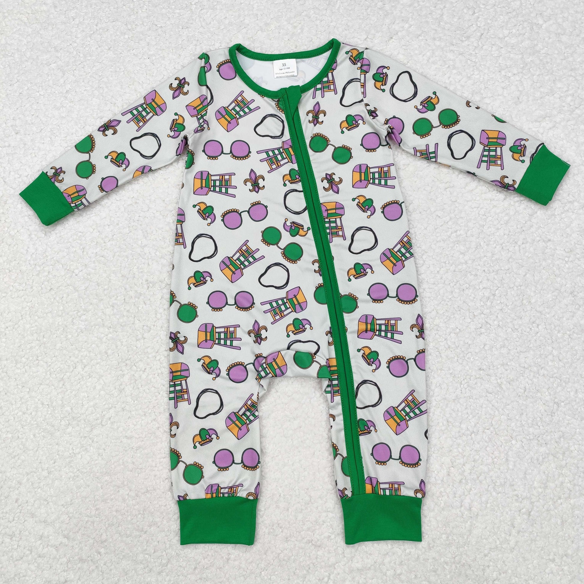 Sibling Baby Boys Infant Long Sleeves Mardi Gras Bows Camo Zipper Rompers RTS