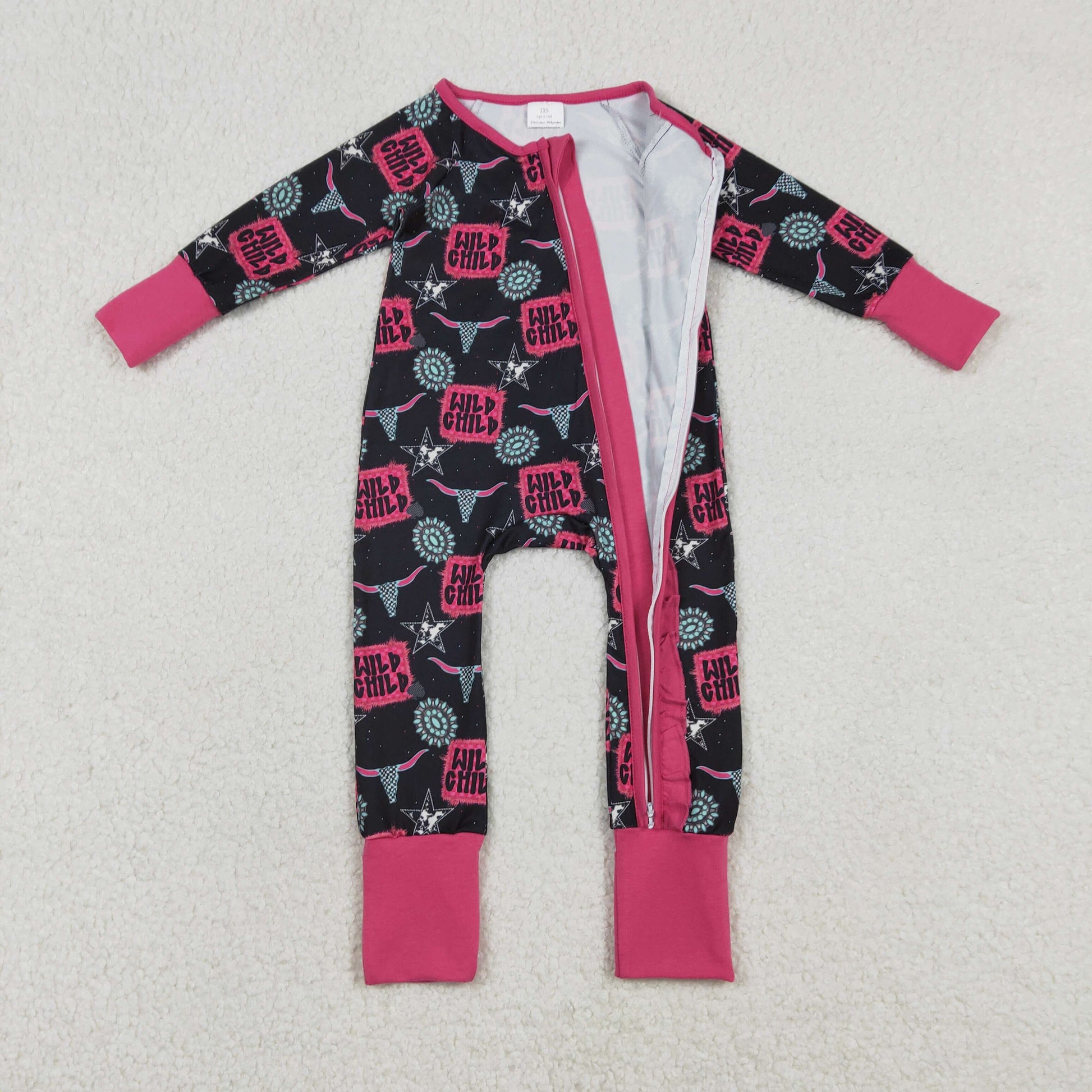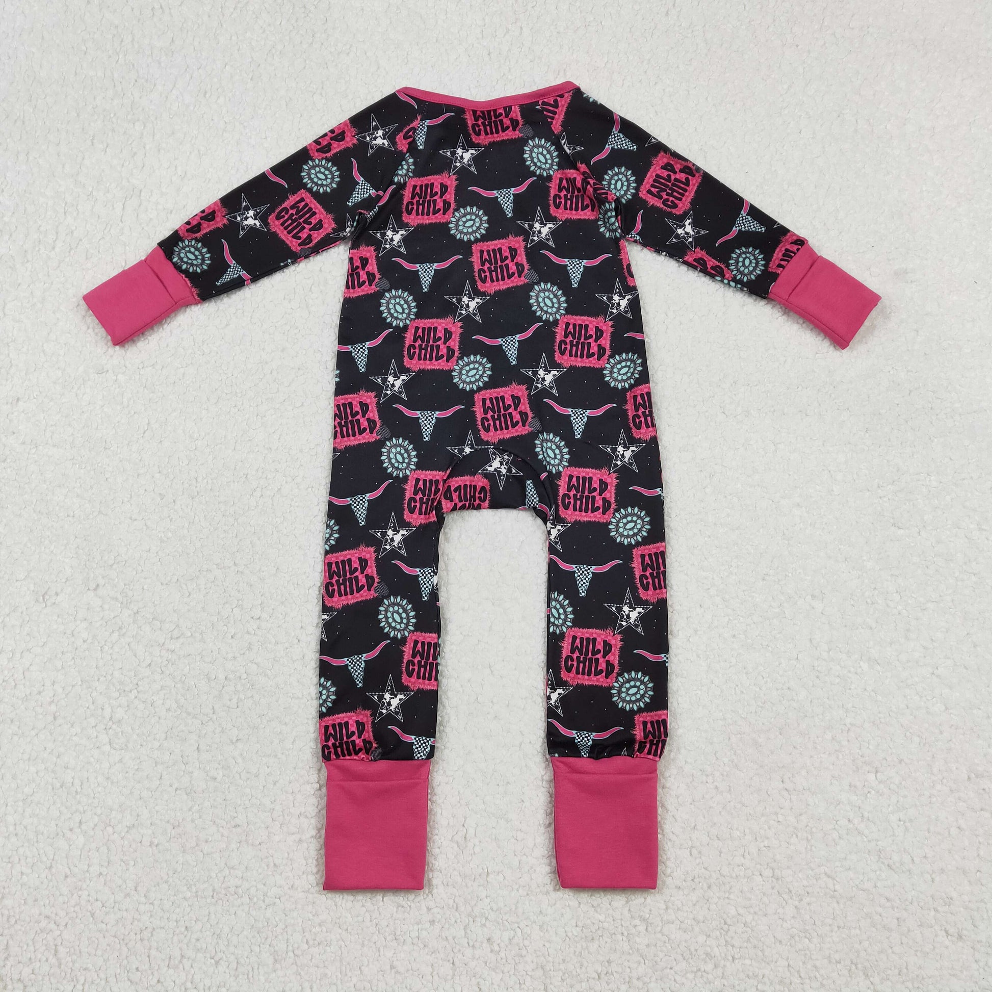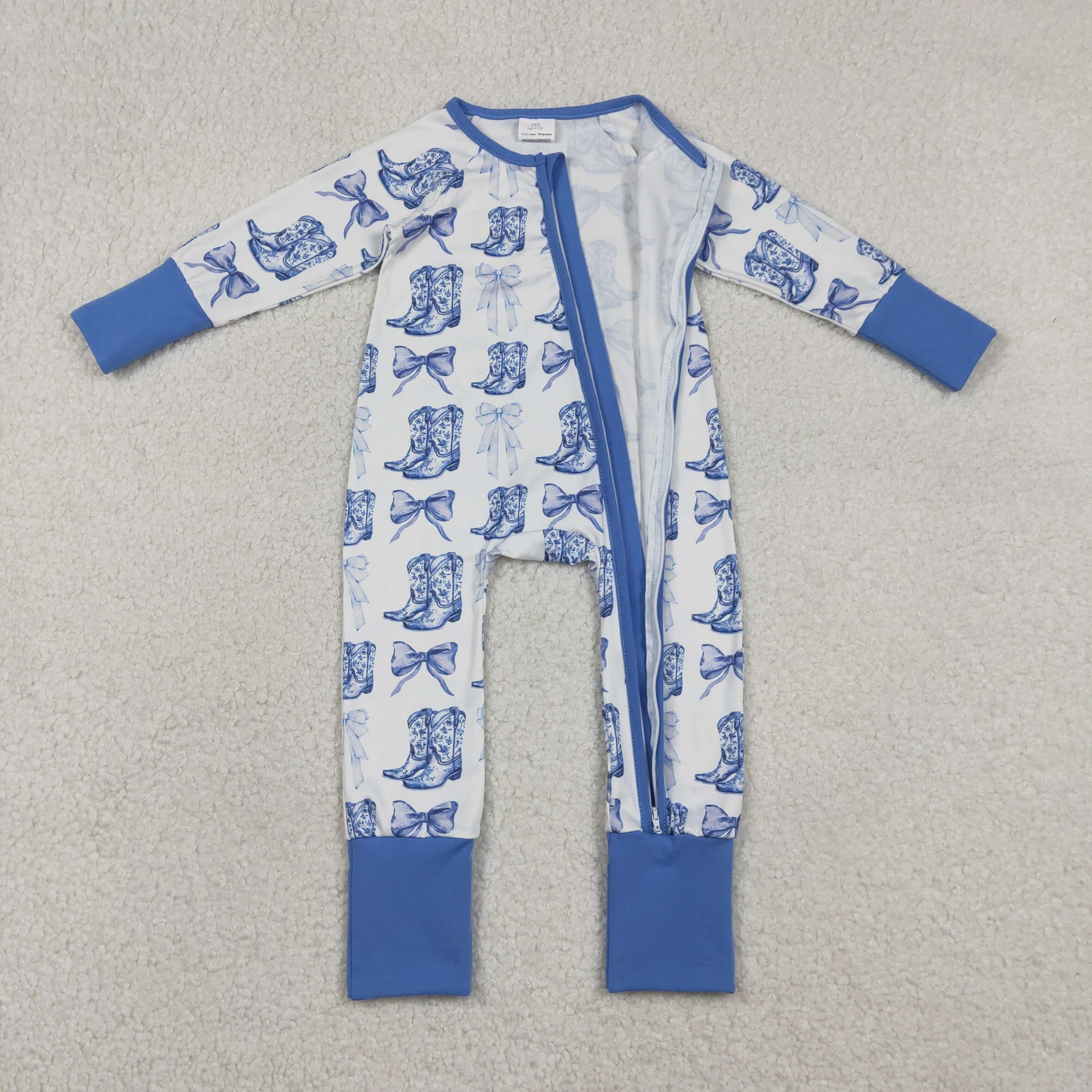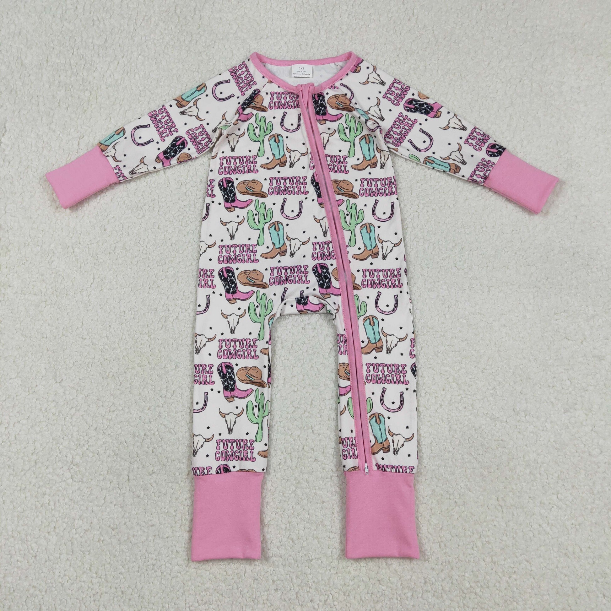 Sibling Baby Boys Girls Long Sleeves Boots Cactus Western Cow Print Zipper Footie Sleeper Rompers RTS