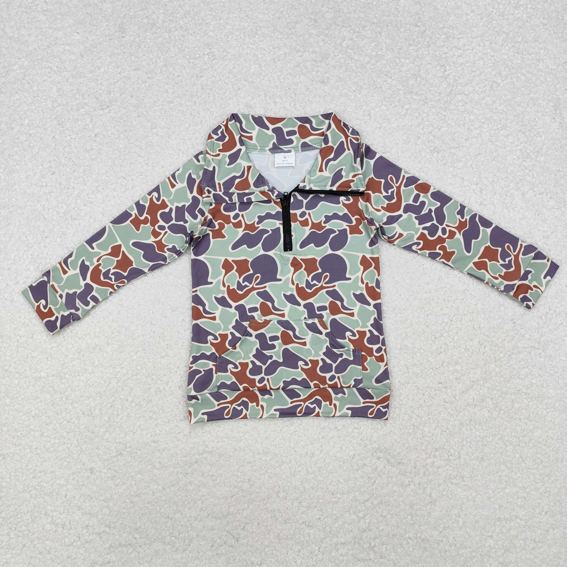 Sibling Baby Boys Kids Long Sleeves Pockets Zipper Pullovers Southern Camo Shirts RTS