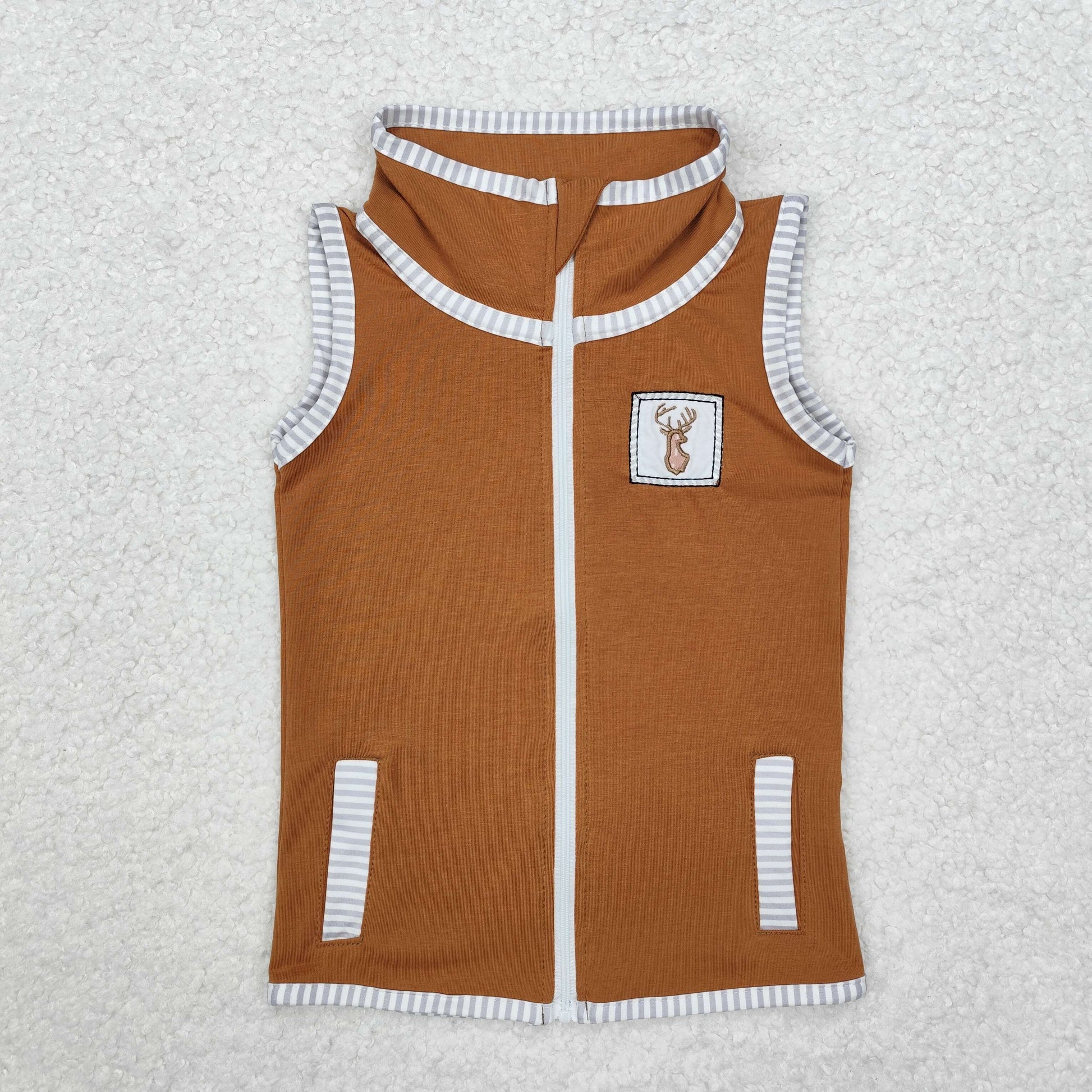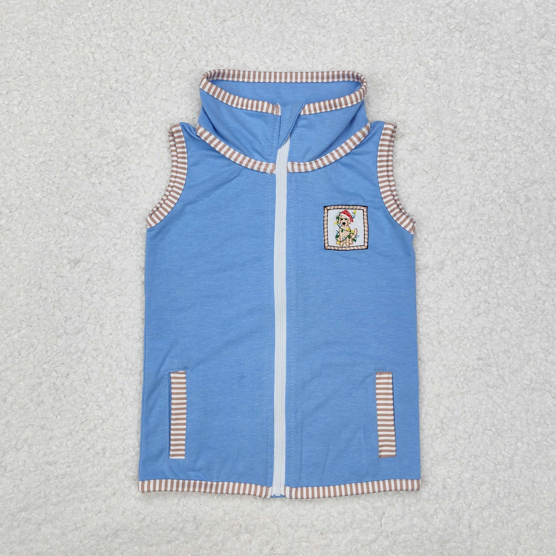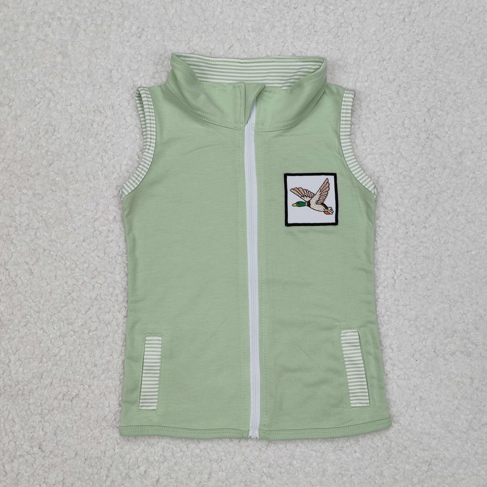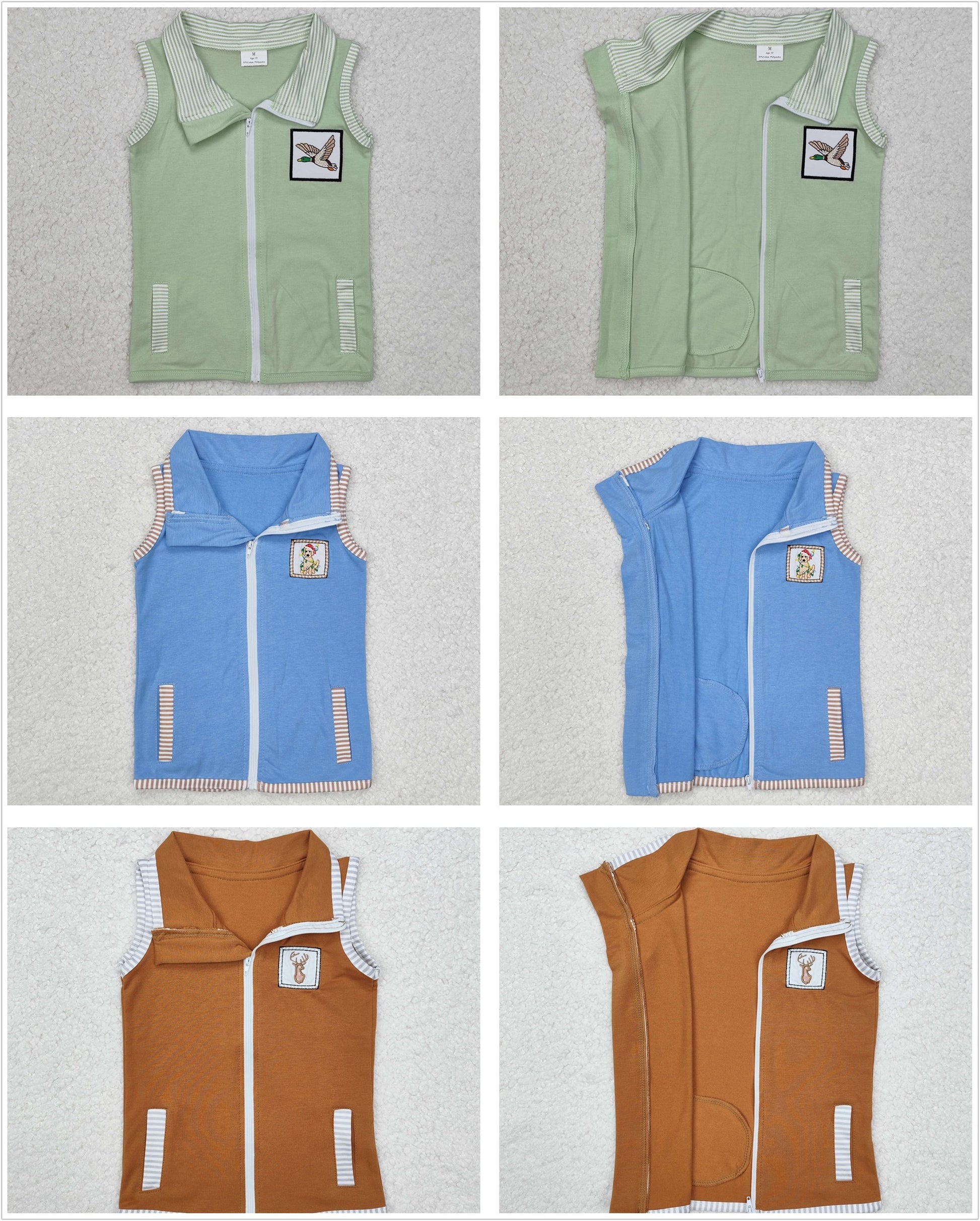 Baby Kids Toddler Sleeveless Embroidery Deer Dog Duck Pockets Sibling Zipper Tops