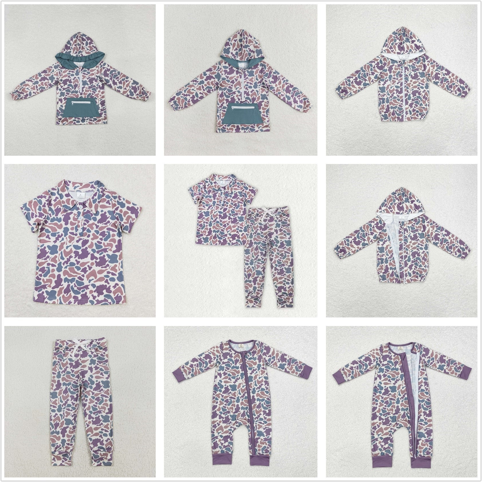Sibling Baby Boys Girls Kids Southern Camo Print Shirts Pants Zipper Romper Clothes Set RTS