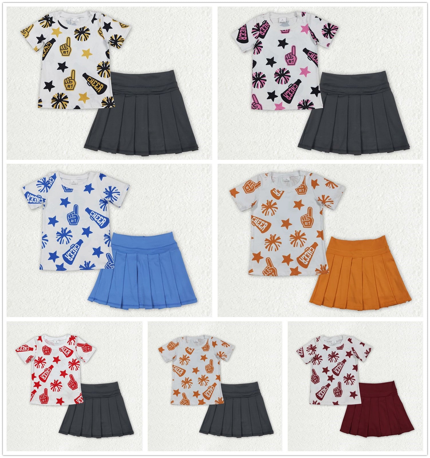 Sibling Baby Girls 4 colors Cheer Top Yoga Pleated Skirts Team Clothes Sets