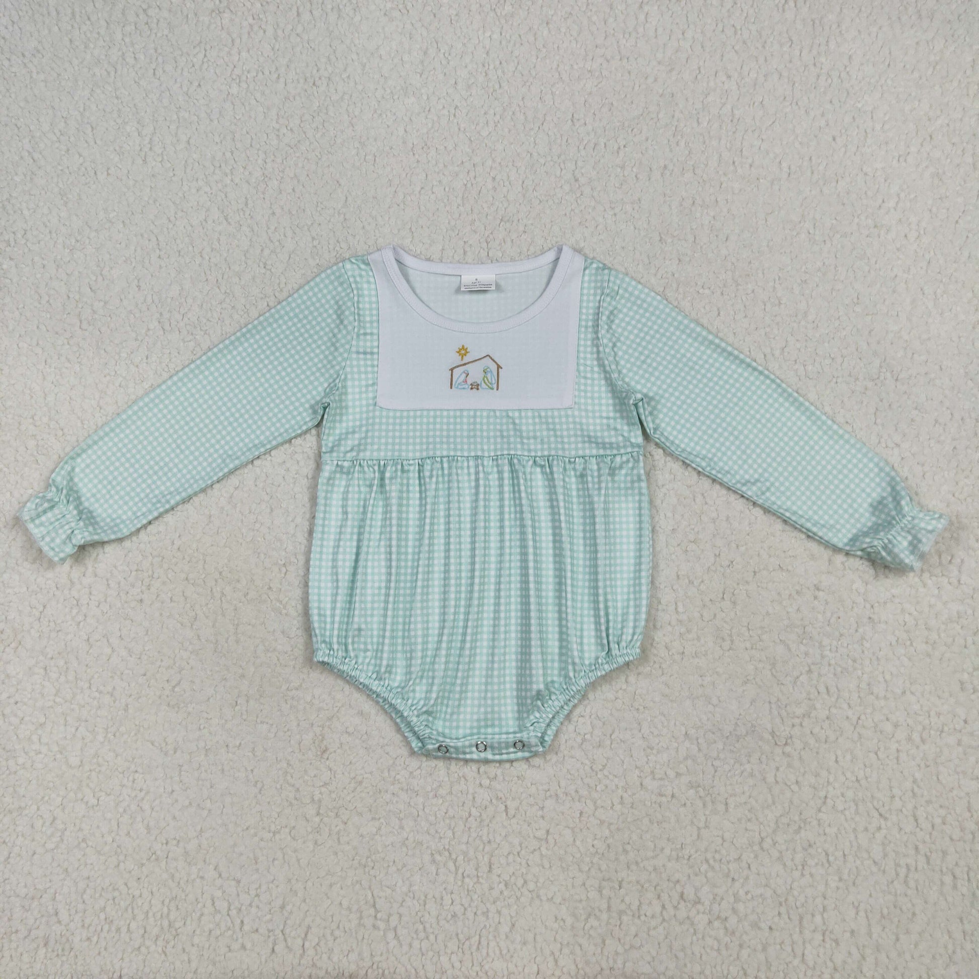 Baby Girl Long Sleeves Green Plaid Embroidery Jesus Sibling Romper Set RTS