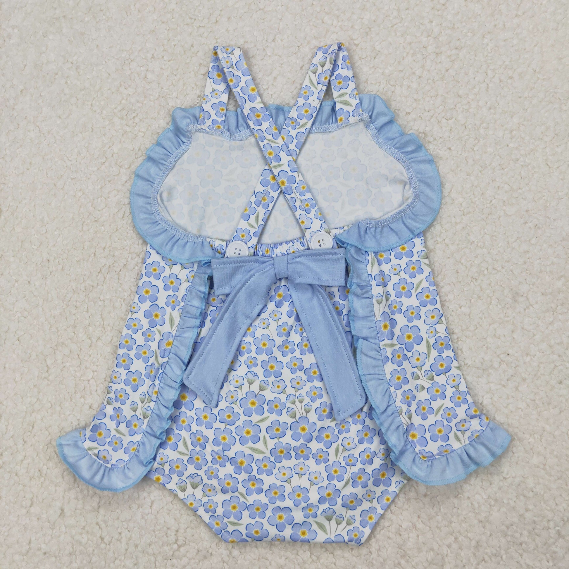 Baby Girl Sleeveless Flower Sibling Blue Sibling Romper Set Clothes RTS