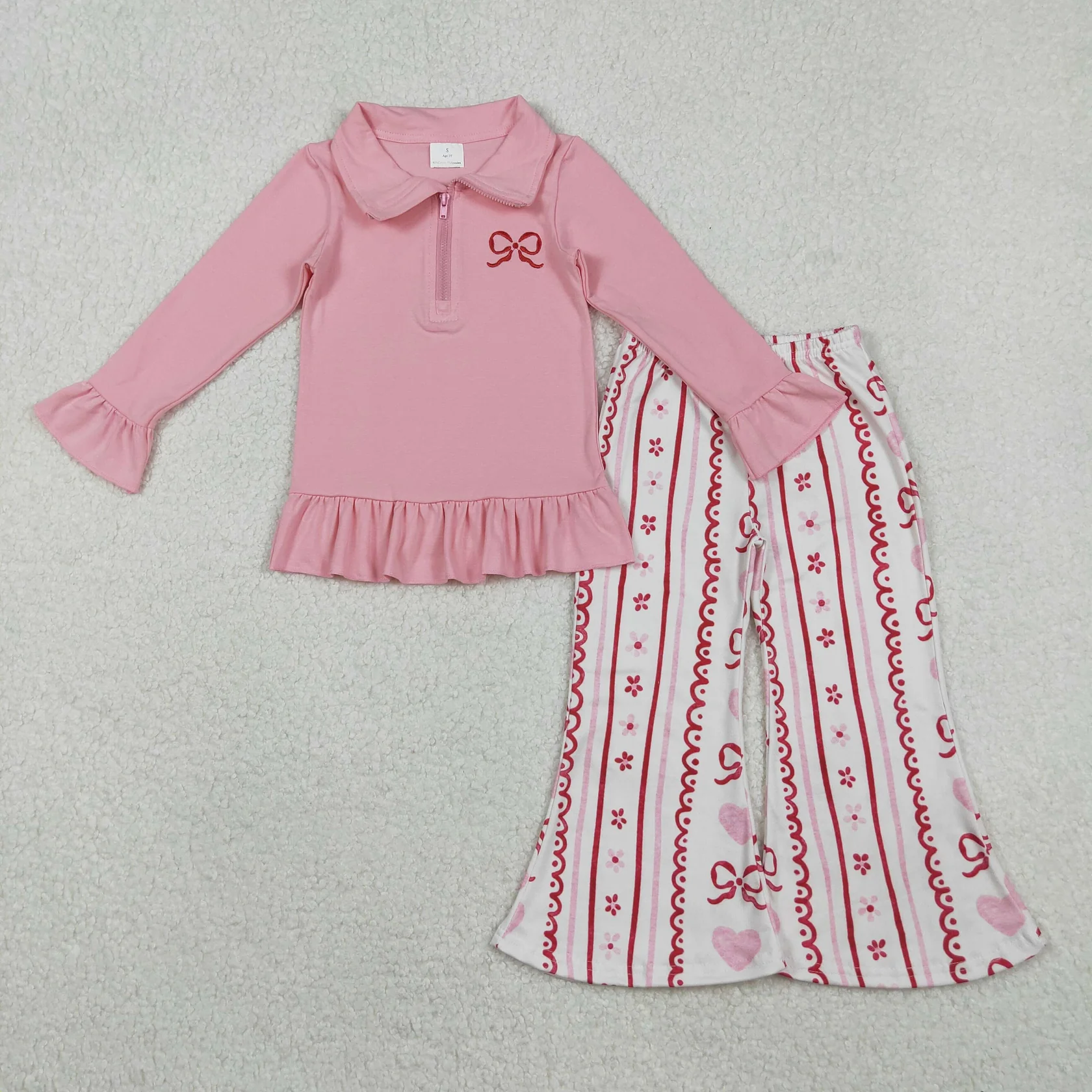 Sibling Baby Girls Kids Bows Hearts Flower Zipper Romper Valentine Sets RTS