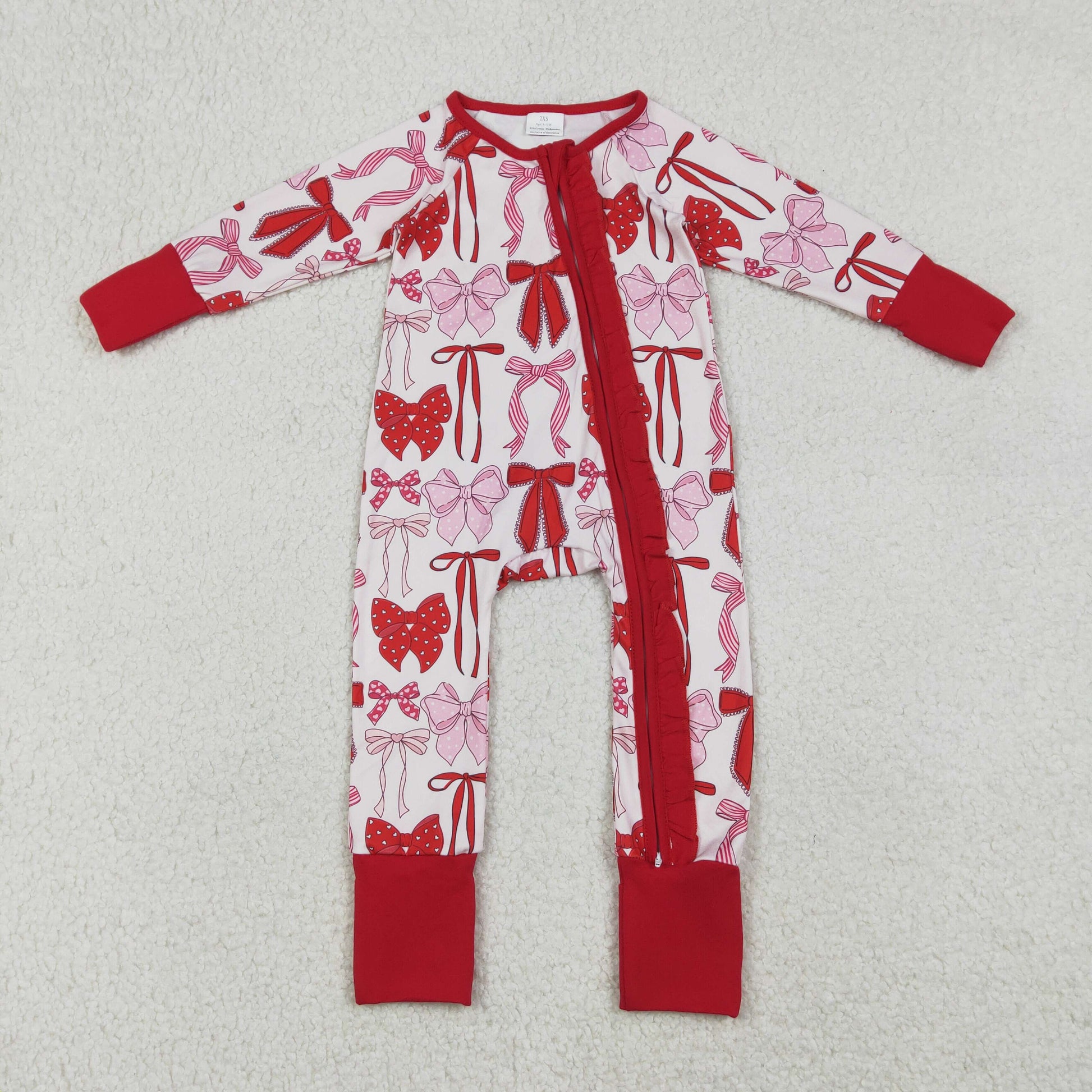 Sibling Baby Girls Kids Hearts Bows Zipper Romper Hoodie Shirt Set Valentine's Clothes RTS