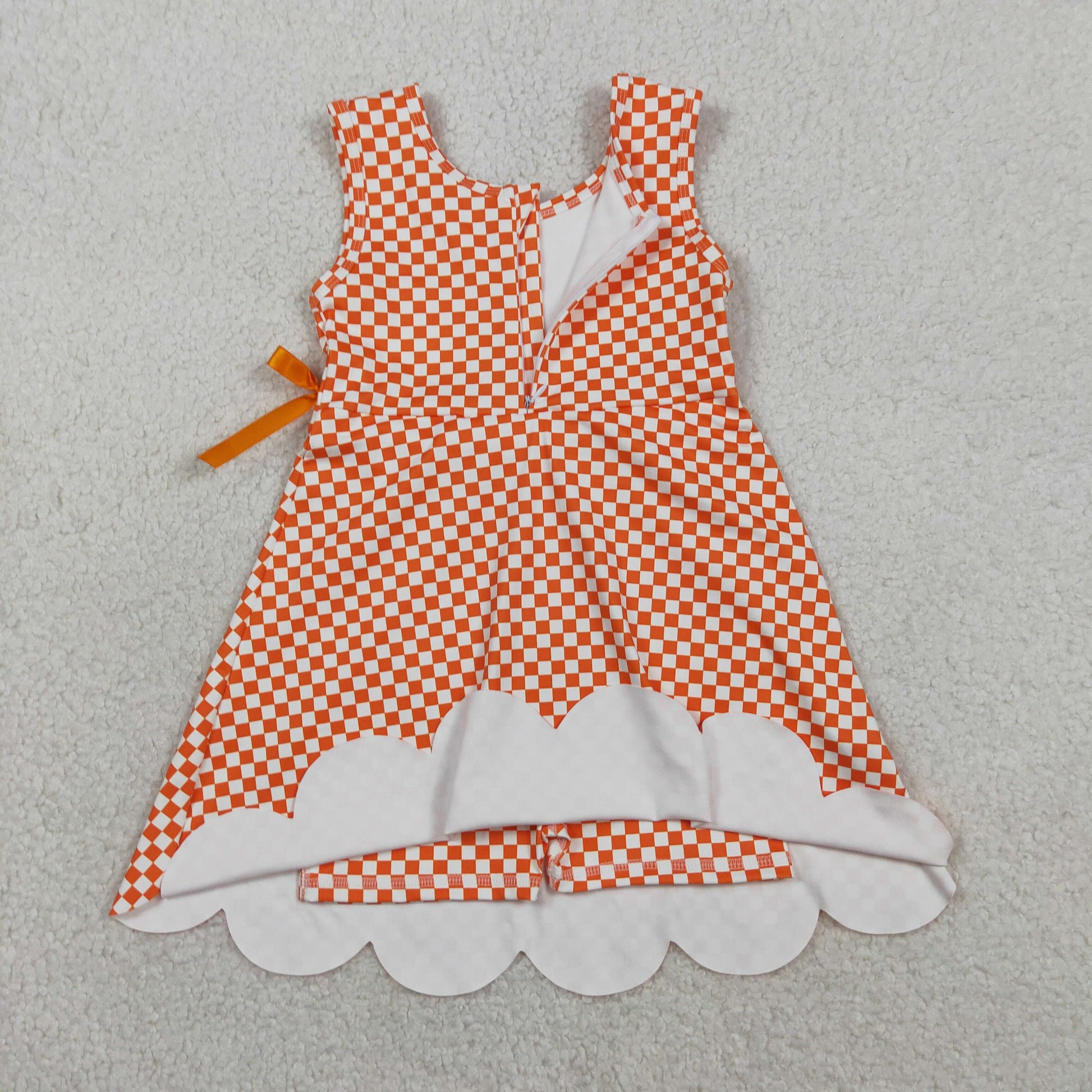 Sibling Baby Girls Checked Bow Ruffle Yoga Active Shorts Knee Length Scallop Dresses RTS