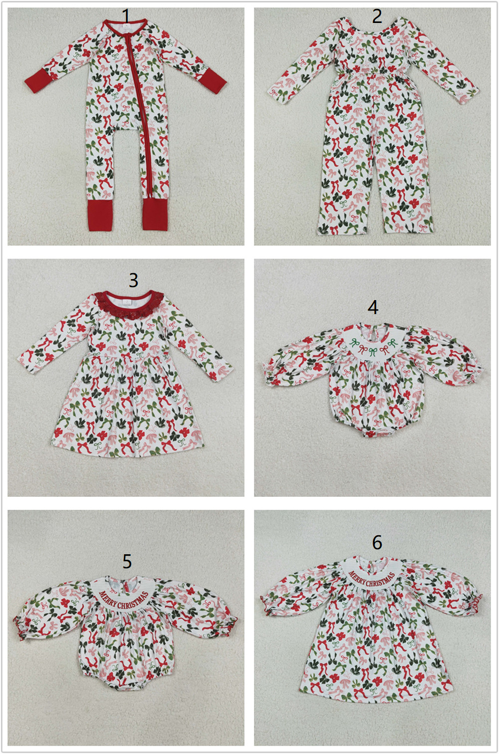 Sibling Baby Girls Christmas Green Red Bows Pockets Jumpsuits Knee Length Dress